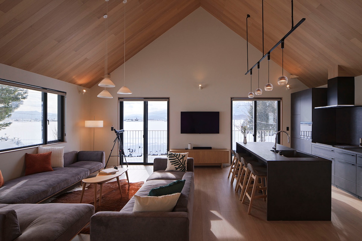 Villa Matsu ofrece amplias vistas a la montaña, un entorno tranquilo y una ubicación conveniente en Furano. Disfruta de una sala de estar de planta abierta con vistas a la cordillera Tokachi y de un balcón orientado al monte Ashibetsu con campos y lavanda debajo. La villa cuenta con tres dormitorios luminosos y un baño de estilo spa con calefacción por suelo radiante. Con calefacción completa y aire acondicionado de verano, es un refugio cómodo durante todo el año.