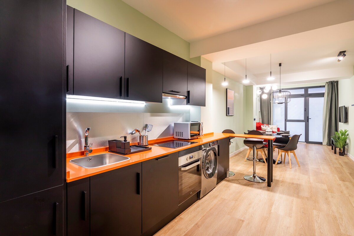 Disfruta de una estancia única en nuestro acogedor loft de obra nueva, moderno, espacioso y totalmente equipado. Todo lo que necesitas para disfrutar de tu estancia en Valencia. Diseño moderno con techos altos decorados con vigas de madera, sofá-cama, chimenea acogedora, televisión, proyector y cama de matrimonio con ropa de cama confortable. Cuenta con aire acondicionado calor/frío por split.