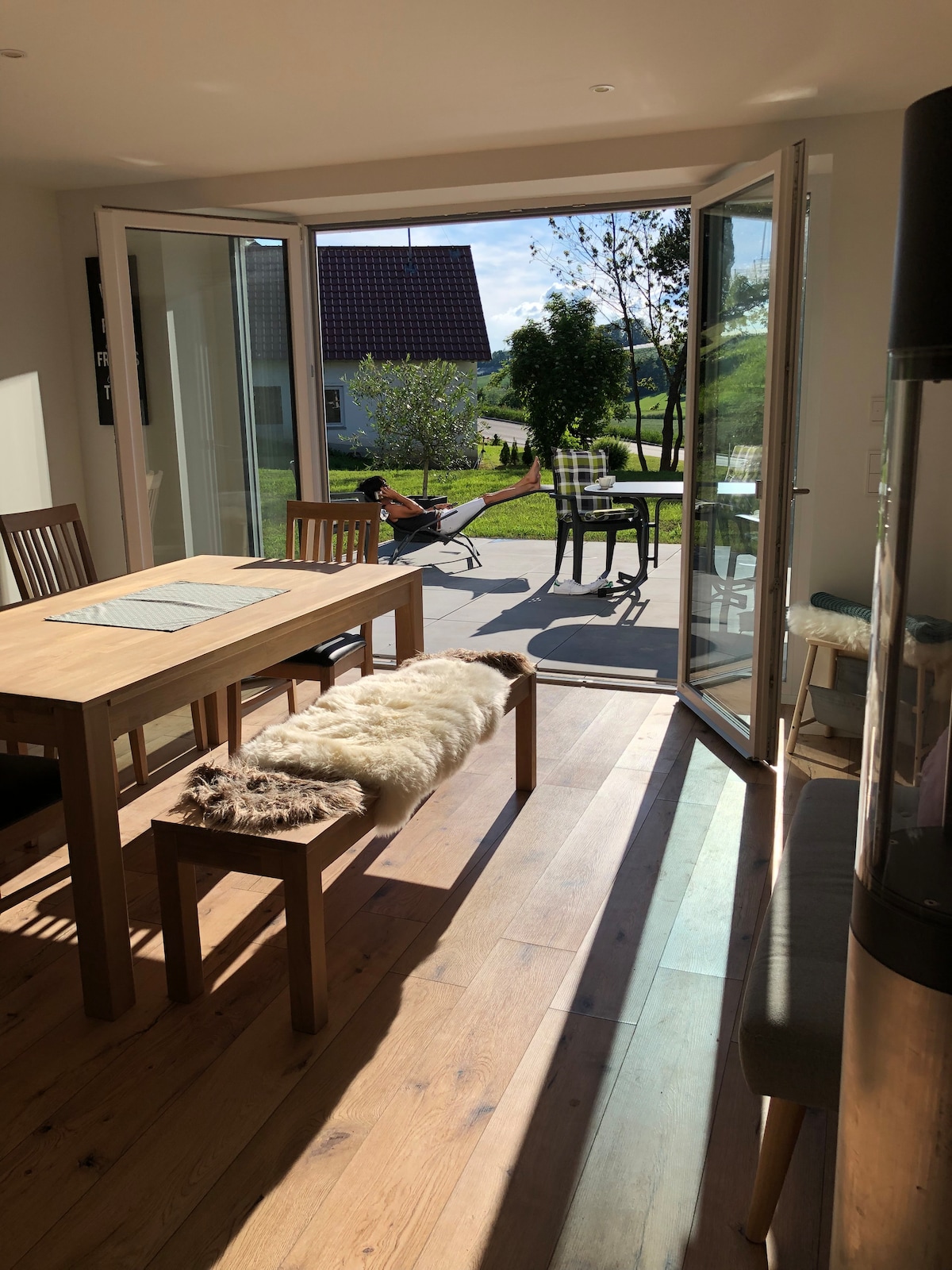 Rodeado de prados y campos, este escondite independiente te invita a relajarte. La encantadora casa familiar está situada tranquilamente en el borde de un pueblo en la Alta Suabia, ofreciendo privacidad y vistas verdes. Ideal para parejas o familias pequeñas con hasta dos hijos, así como para estancias relajantes o trabajo concentrado. Gracias al acceso directo a la B30, es fácil llegar al lago de Constanza y a Ravensburg. Una zona residencial tranquila, perfecta para relajarse después de un día activo.