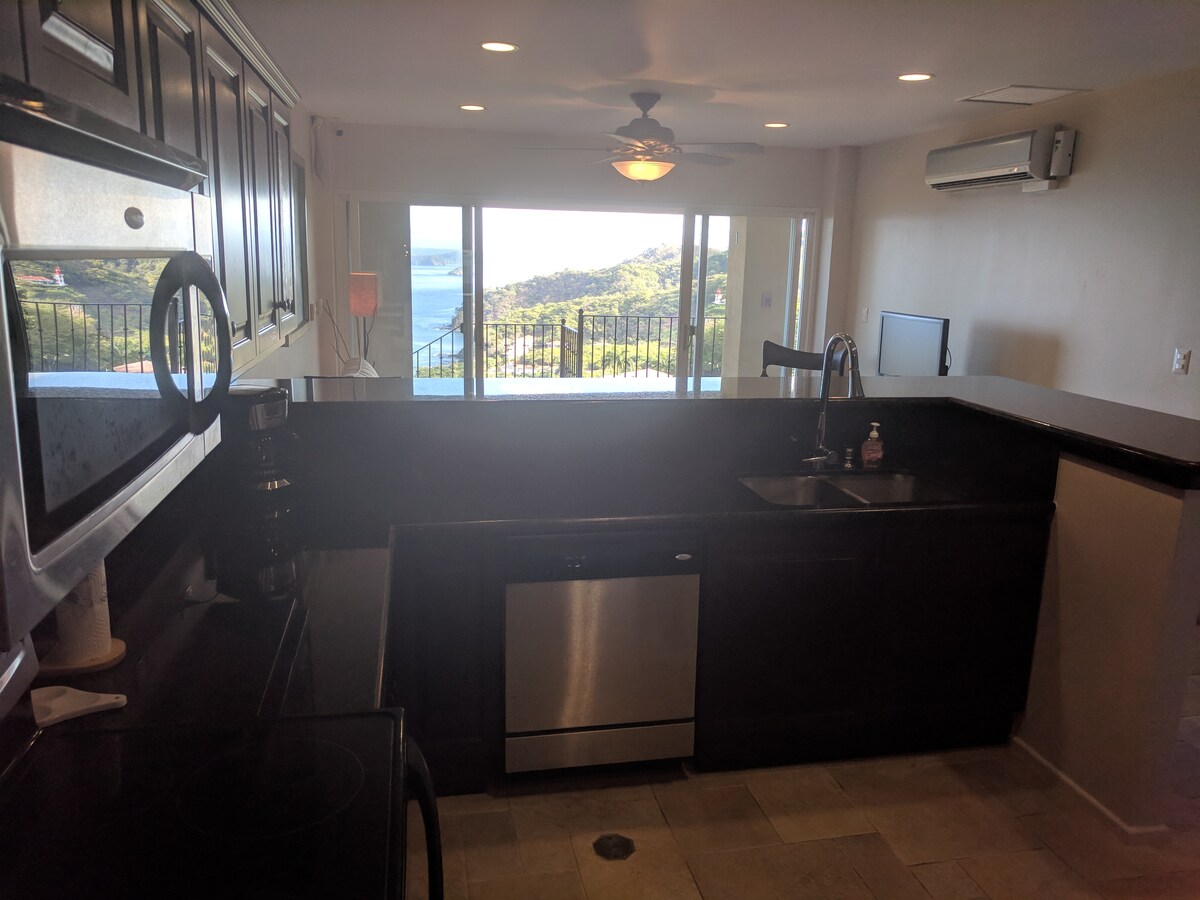Descansa y relájate en este hermoso y tranquilo apartamento en la cima de una colina rodeado de naturaleza con magníficas vistas al océano Pacífico desde un balcón privado. O flota en la piscina infinita con vistas al mar. A solo 35 minutos del aeropuerto de Liberia y a 3 minutos de las aguas tranquilas y aisladas de Playa Ocotal o a 10 minutos de las tiendas/restaurantes y la vida nocturna de Playa Cocos. Despiértate con vistas al Pacífico desde tu nuevo colchón tamaño king Beautyrest Plush. Los dormitorios tienen ropa de cama nueva de alta gama de EE. UU. La cocina está totalmente equipada.