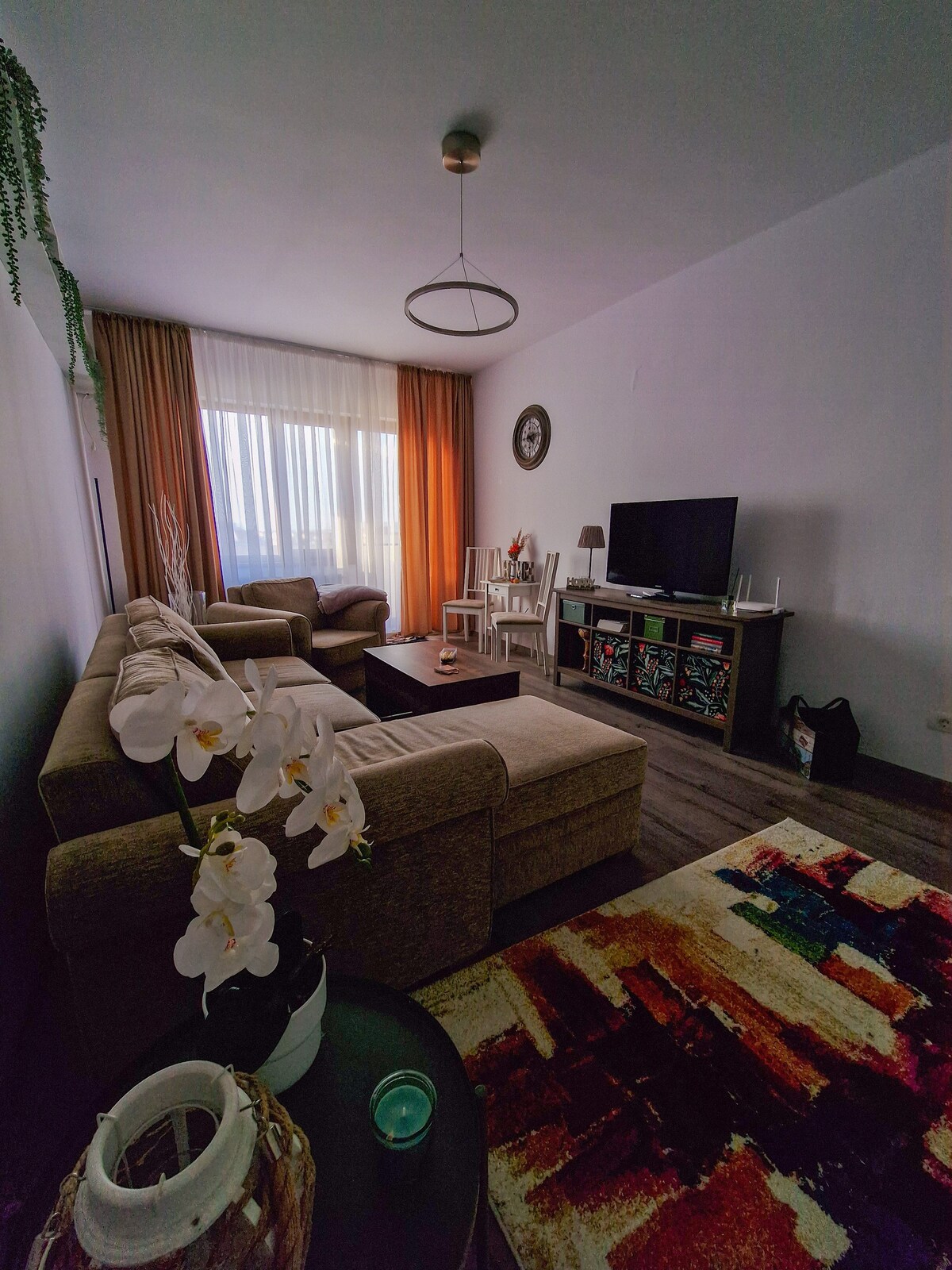 Bienvenido a un estudio moderno y cómodo, ideal para viajeros de negocios, parejas o tránsito corto, situado en Otopeni, a pocos minutos del aeropuerto internacional Henri Coanda. El apartamento tiene una superficie de 40 metros cuadrados, además de una espectacular terraza/balcón de 26 metros cuadrados, perfecta para relajarse, tomar un café por la mañana o pasar una noche tranquila después de un día ajetreado.