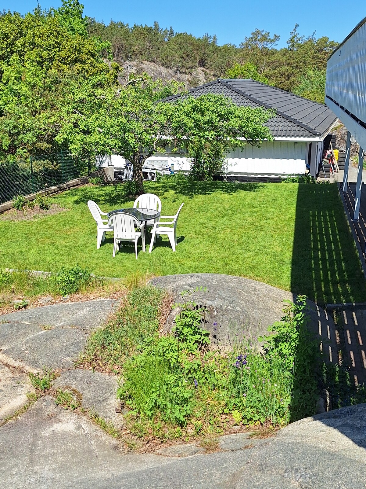 Cocina y salón con sofá cama de 155 cm y vistas al mar. Amplio dormitorio con cama doble de 160 cm. Cocina con horno/placa de inducción, nevera/congelador, fregadero y microondas. Baño con ducha, lavadora y secadora. Balcón y gran patio con césped. Aparcamiento en el exterior. A 10 minutos a pie del agua, con playas, acantilados y un puerto deportivo. El bosque está a 1 minuto detrás de la casa. A 15 minutos en coche del centro, a 10 minutos de las tiendas de Nordby. A 20 minutos de Koster en barco. Zona tranquila.