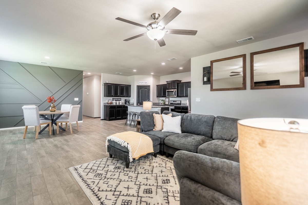No necesitas irte para divertirte, ¡está al alcance de tu mano! Casa de nueva construcción en Ratliff Ridge en un barrio tranquilo y familiar con restaurantes cerca. Cómoda y acogedora para una familia o simplemente para una escapada divertida. Las comodidades van desde una bañera de hidromasaje en la parte trasera, donde también puedes reunirte alrededor de la chimenea mientras asas malvaviscos o juegas al tenis de mesa, al futbolín o incluso a cuatro en raya. Cocina totalmente amueblada, lavadora y secadora disponibles. Hermosa decoración para que te sientas como en casa y 1 gig de wifi.