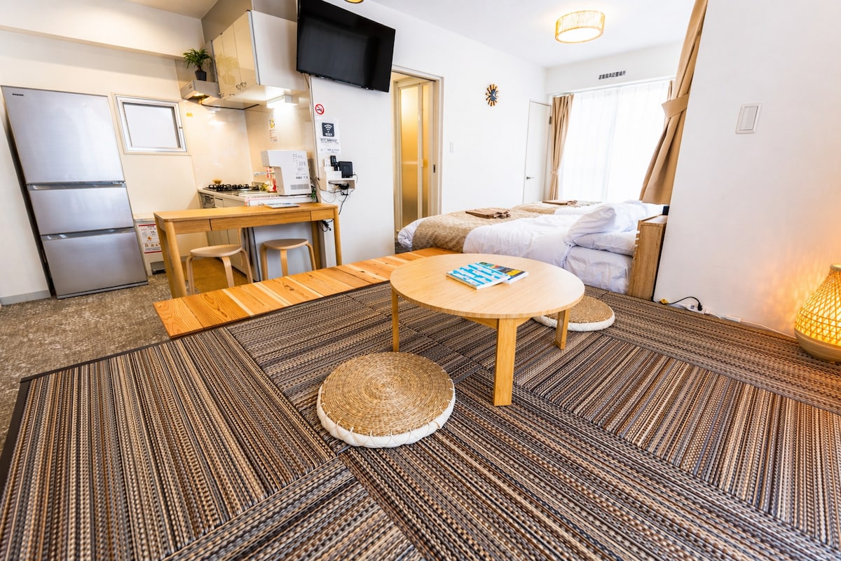 ¡Alójate en el corazón de Naha! A solo 10 minutos del aeropuerto en Yui Rail (estación de Kenchō-mae). No necesitas alquilar un coche. ※ Hay aparcamiento disponible en aparcamientos cercanos que funcionan con monedas. 3 bicicletas gratuitas incluidas. A 1 minuto de Kokusai Street A 5 minutos de la playa de Naminoue A 15 minutos del Castillo de Shuri A 8 minutos del puerto de Tomari ¡La mejor forma de explorarlo es en bicicleta! Cómodo para 3 adultos. Hasta 4 huéspedes, incluidos los niños. ※ No apto para 4 adultos.