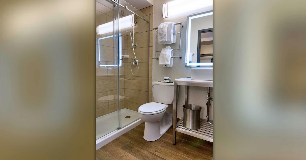 A blend of comfort and modern elegance. This boutique retreat features a king-size bed adorned with plush linens, ensuring a restful night's sleep. The room boasts a chic seating arrangement, perfect for lounging and relaxation. The well-appointed wet bar with premium amenities and a wine fridge provides convenience, inviting you to toast to special moments. The vanity area, adorned with luxury finishes, offers a space to prepare for your day or unwind in the evening.