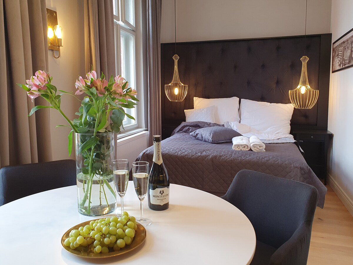 El apartamento se encuentra en el edificio histórico llamado «La Casa del Alcalde». En el pasado, fue el lugar de residencia habitual de los antiguos alcaldes de Olsztyn. Se considera la vivienda más antigua que queda de Prusia Oriental. Adecuado para parejas enamoradas, familias con niños y fines turísticos. Apreciado por su comodidad, estilo, privacidad, ambiente hogareño, comodidad y ubicación céntrica. Las instalaciones de última generación y el tamaño de 43 m2 lo hacen ideal tanto para estancias cortas como largas.