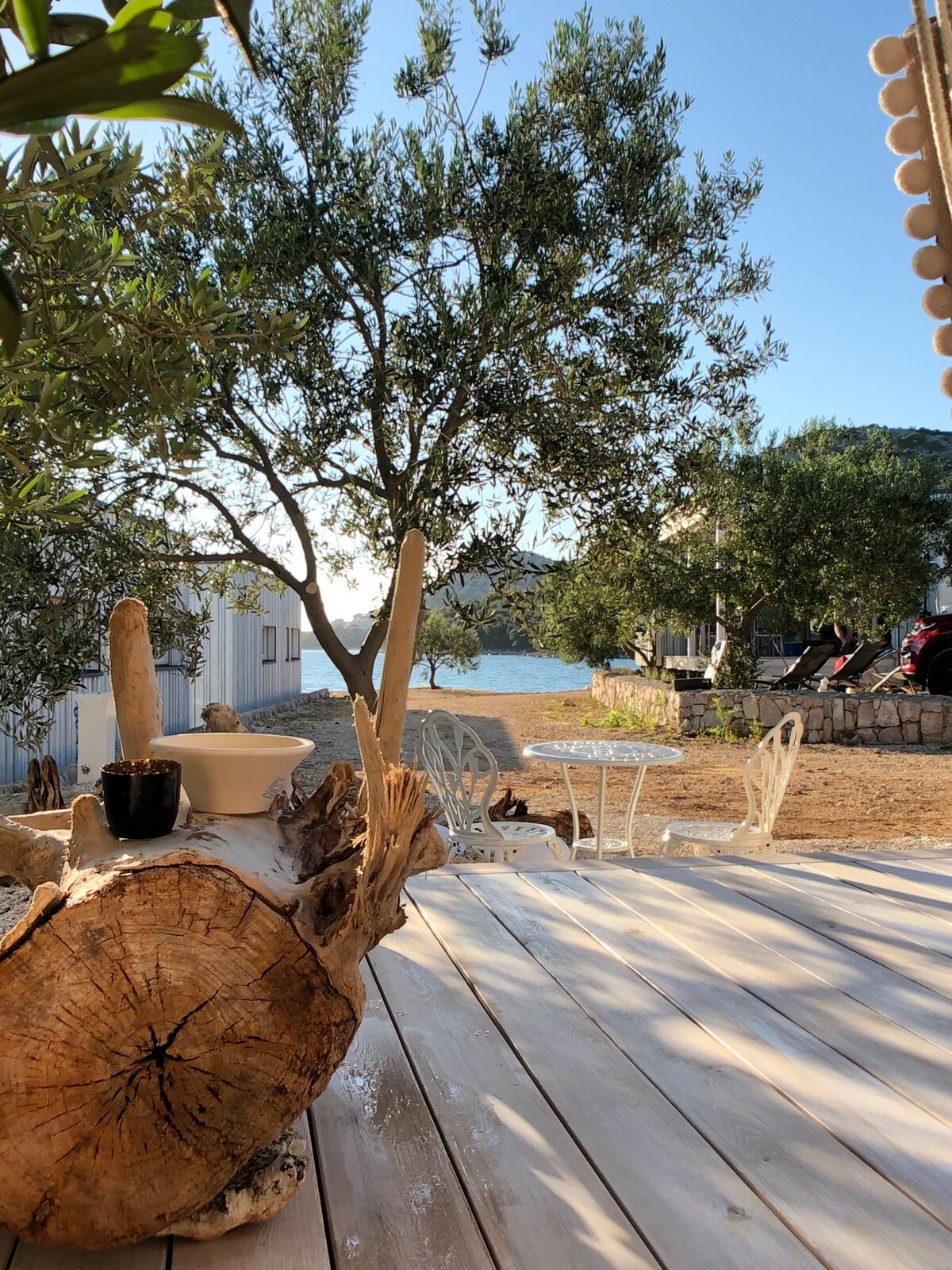 El edificio está situado justo al lado de la costa, en la hermosa bahía turquesa y dinámica de Kosirina. Ofrece privacidad, está rodeado de vegetación y flores a la sombra de un olivo centenario. Consta de salón, cocina, dormitorio y baño. En la habitación hay dos camas francesas (galería). La sala de estar está acristalada con paredes móviles y tiene vistas al mar y a toda la bahía. La terraza está cubierta y los huéspedes tienen a su disposición 2 tumbonas, 2 columpios, una tabla de surf, una parrilla, una ducha solar al aire libre...