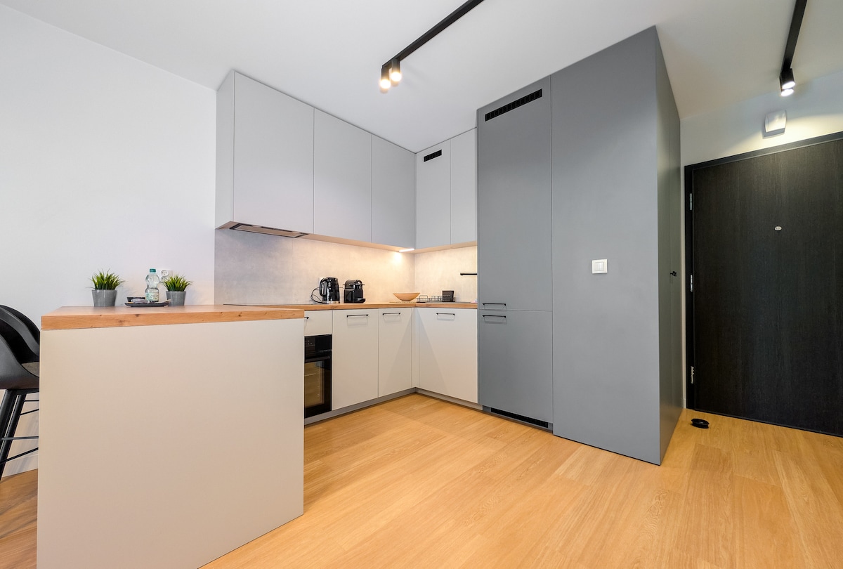 Un apartamento exclusivo, moderno y funcional con un dormitorio, una gran sala de estar con una hermosa vista de Breslavia. Se encuentra en un nuevo edificio de apartamentos en el piso 13 con su propio aparcamiento subterráneo y seguridad las 24 horas, los 7 días de la semana. La cocina totalmente equipada te permite preparar comidas caseras. Alto nivel, comodidad, seguridad y sensación de privacidad para que los huéspedes se sientan como en casa. Internet inalámbrico y Netflix. Acceso al gimnasio, sauna seca y de vapor, jacuzzi y sala de juegos infantil.