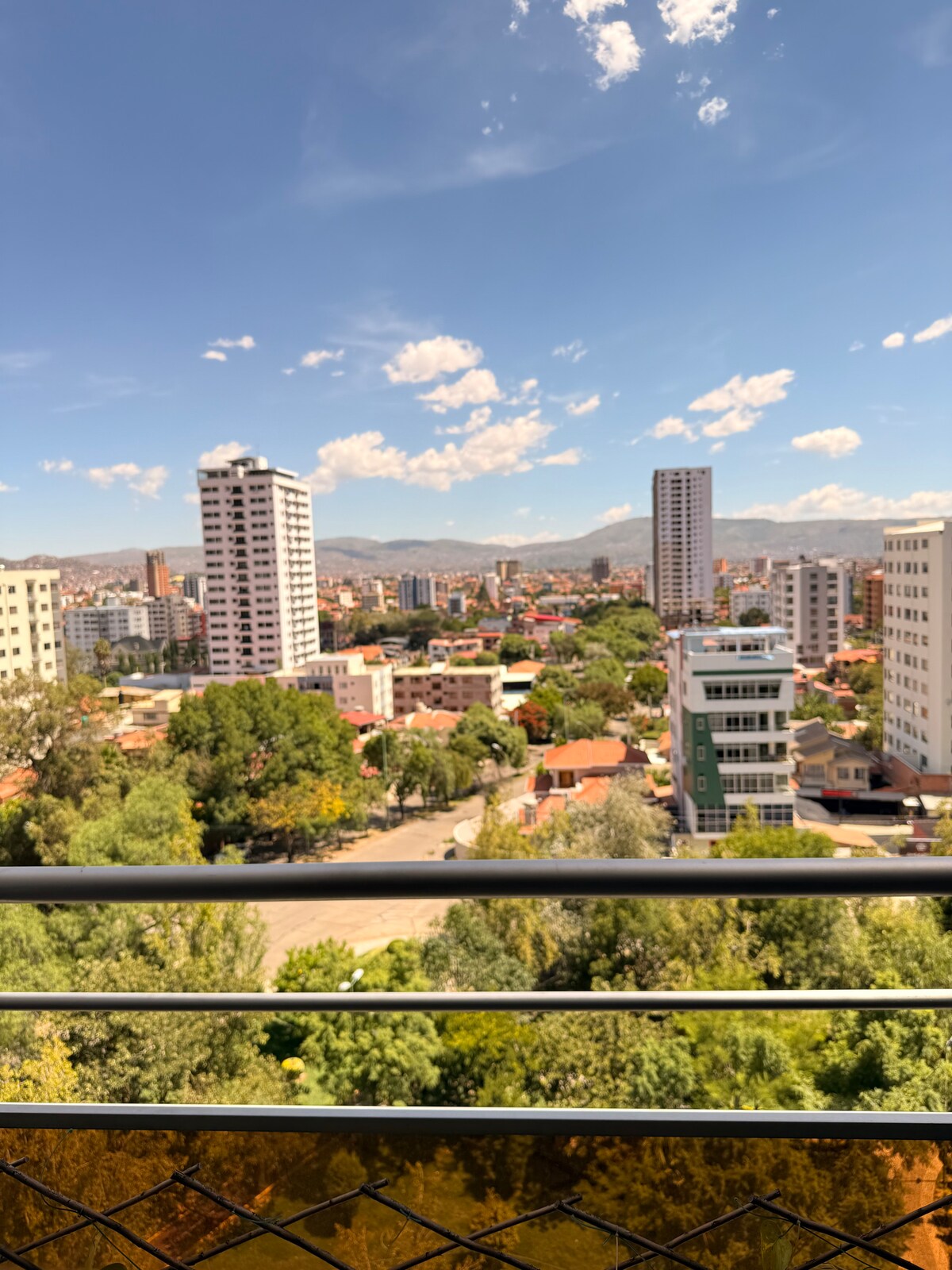 Acogedor Garzonier con cama queen, baño privado y cocina equipada, ideal para estancias cortas o largas. Disfruta de vistas panorámicas de Cochabamba. Acceso a piscina los fines de semana (entre semana con reserva por Bs. 200). Parrillero disponible con costo adicional previa confirmación. Parqueo no incluido, pero se puede alquilar a un vecino. ¡Confort, ubicación y vista en un solo lugar!
