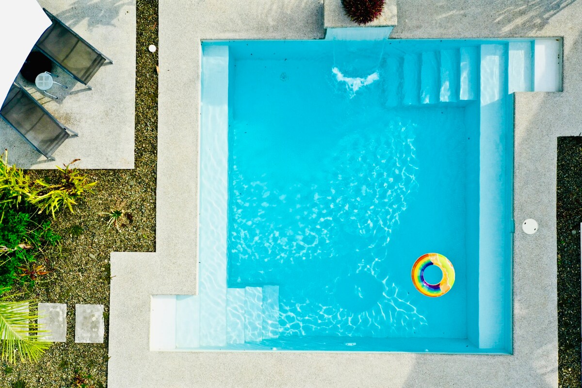 Limpio y moderno/AC/Piscina/Carretera pavimentada - Heliconia Casita