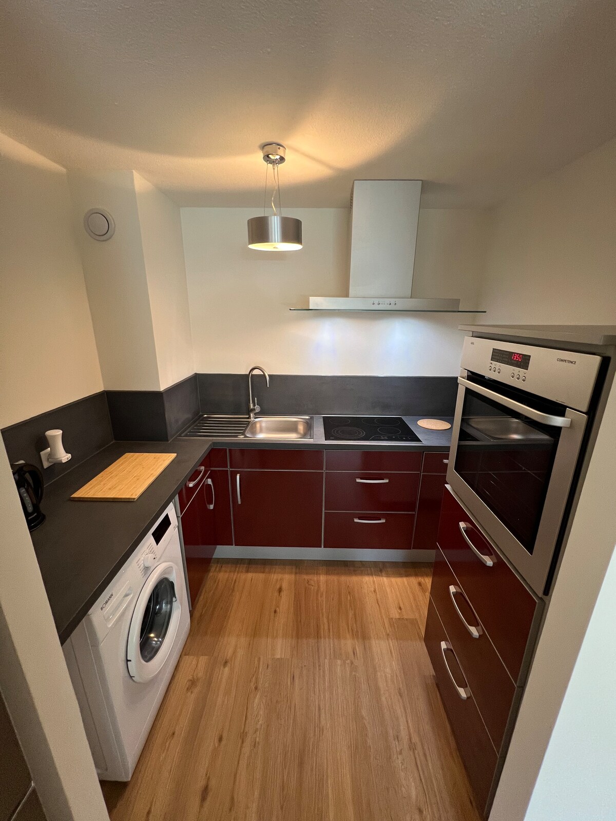 Desde el alojamiento muy céntrico, se puede llegar a todos los restaurantes y bares en pocos minutos a pie. Hay una cocina completa con lavavajillas, horno, nevera y cafetera, así como vajilla. Hay un gimnasio disponible bajo petición. Hay estacionamiento público disponible en las inmediaciones. El carril bici Kocher-Jagst pasa directamente por la propiedad y te invita a disfrutar de tranquilos recorridos en bicicleta.