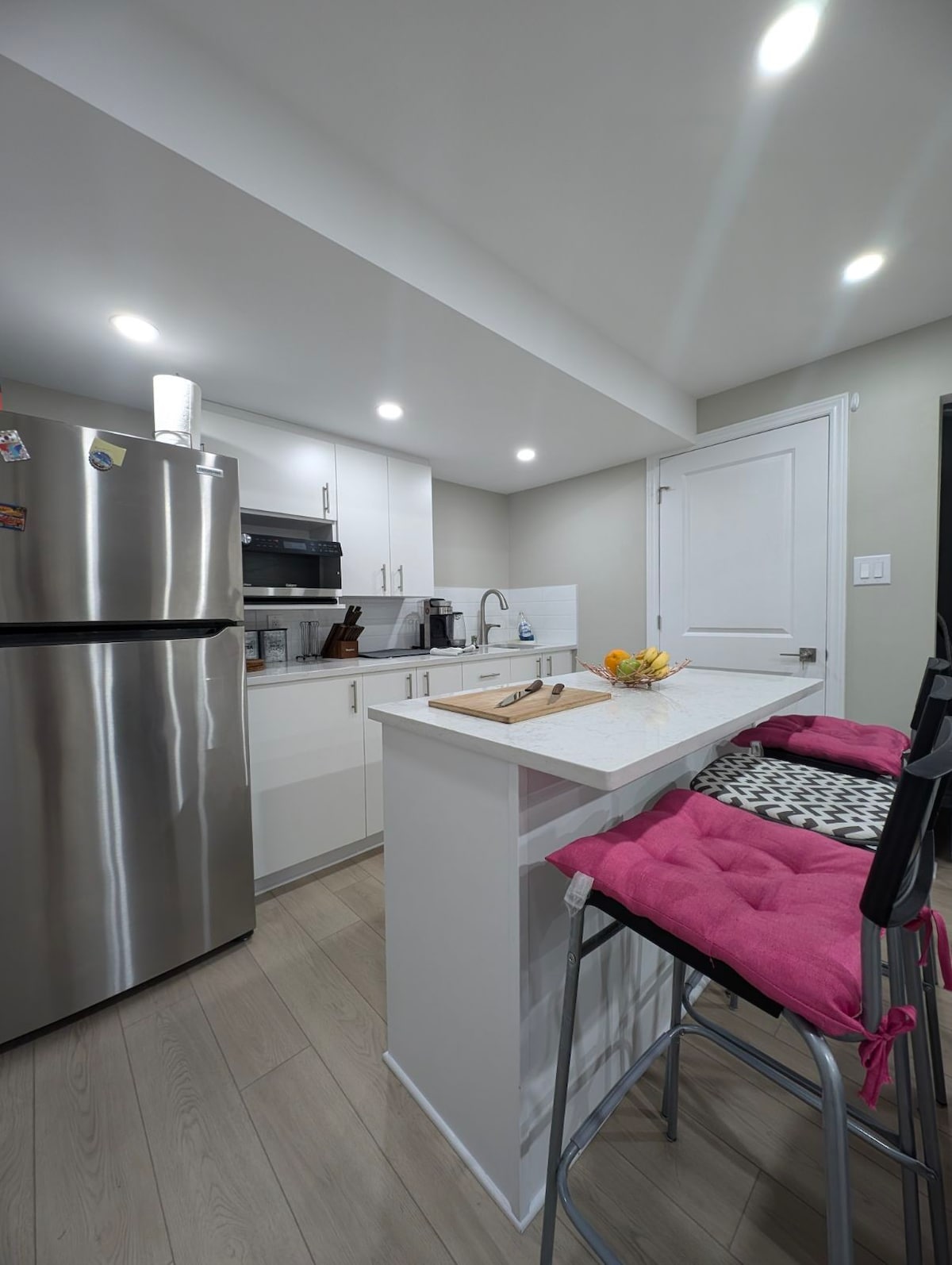 Disfruta de la comodidad y el estilo en nuestra moderna cocina y salón de concepto abierto recién terminados. Equipado con TV, nevera/congelador, microondas/horno, freidora de aire, lavadora y secadora. A solo 8 minutos del aeropuerto, a 20 minutos del centro de la ciudad y a poca distancia a pie de tiendas de comestibles, cafeterías, parques y restaurantes. Disfruta de privacidad con una entrada independiente y un dormitorio seguro con sus propias llaves cerradas con llave. Barrio tranquilo, perfecto para negocios o placer. ¡Reserva ahora y disfruta de una estancia inolvidable en Ottawa!