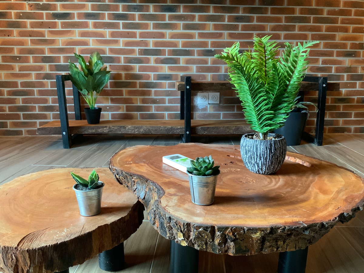 Détendez-vous dans ce logement calme et élégant. Appartement neuf avec une décoration moderne et une végétation autour qui permet de respirer l'air fraîche de la nature. Il se situe dans une zone où il n'y a pas de coupure d'eau et le restaurant Nasso est à 300 mètres si vous voulez vous restaurer.