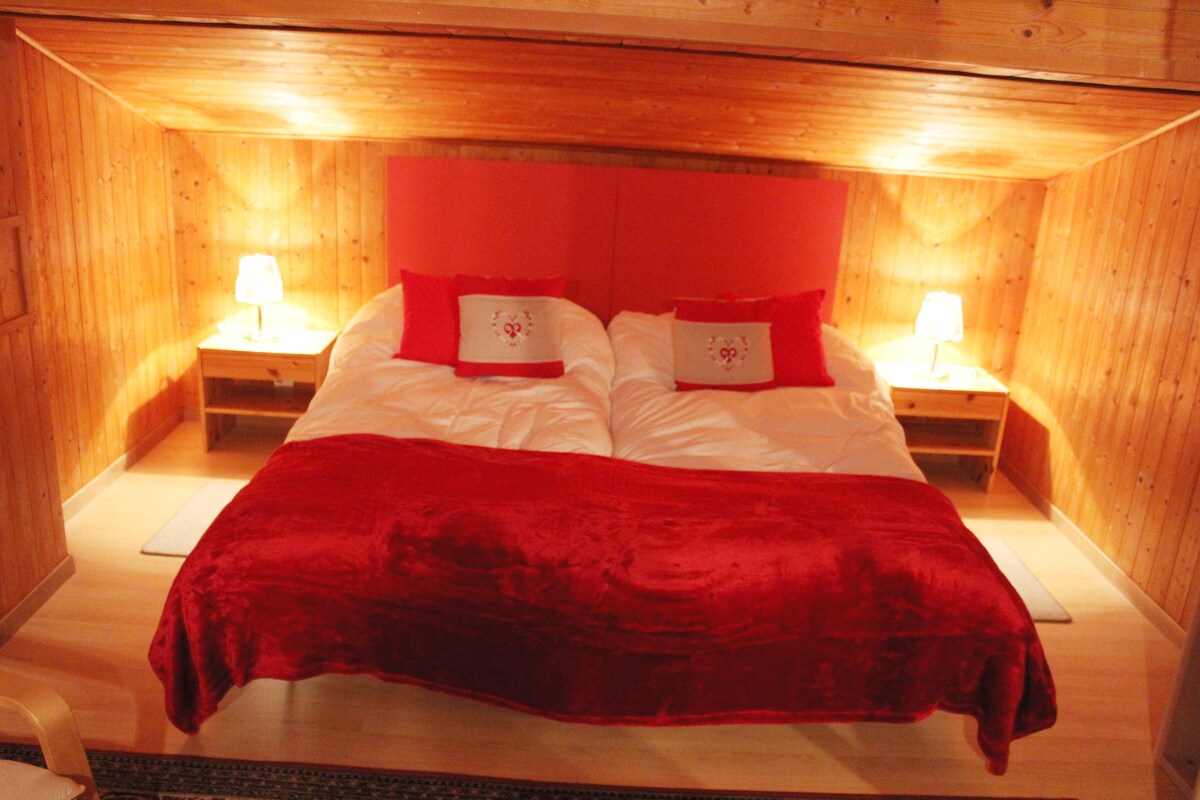 Ubicado sobre el bosque y el río, nuestro luminoso y acogedor chalet se encuentra en una zona tranquila y a pocos pasos de la naturaleza,el río,al comienzo de las rutas de senderismo y a 3 minutos del servicio de transporte(funciona en invierno) Loft ideal para relajarse y descansar junto al fuego de la chimenea o en el jacuzzi. Perfecto para parejas. Para más de 2 personas bajo petición. Dispone de un dormitorio (2 personas) y 1 espacio abierto bajo el altillo con TV y cómodo sofá cama.
