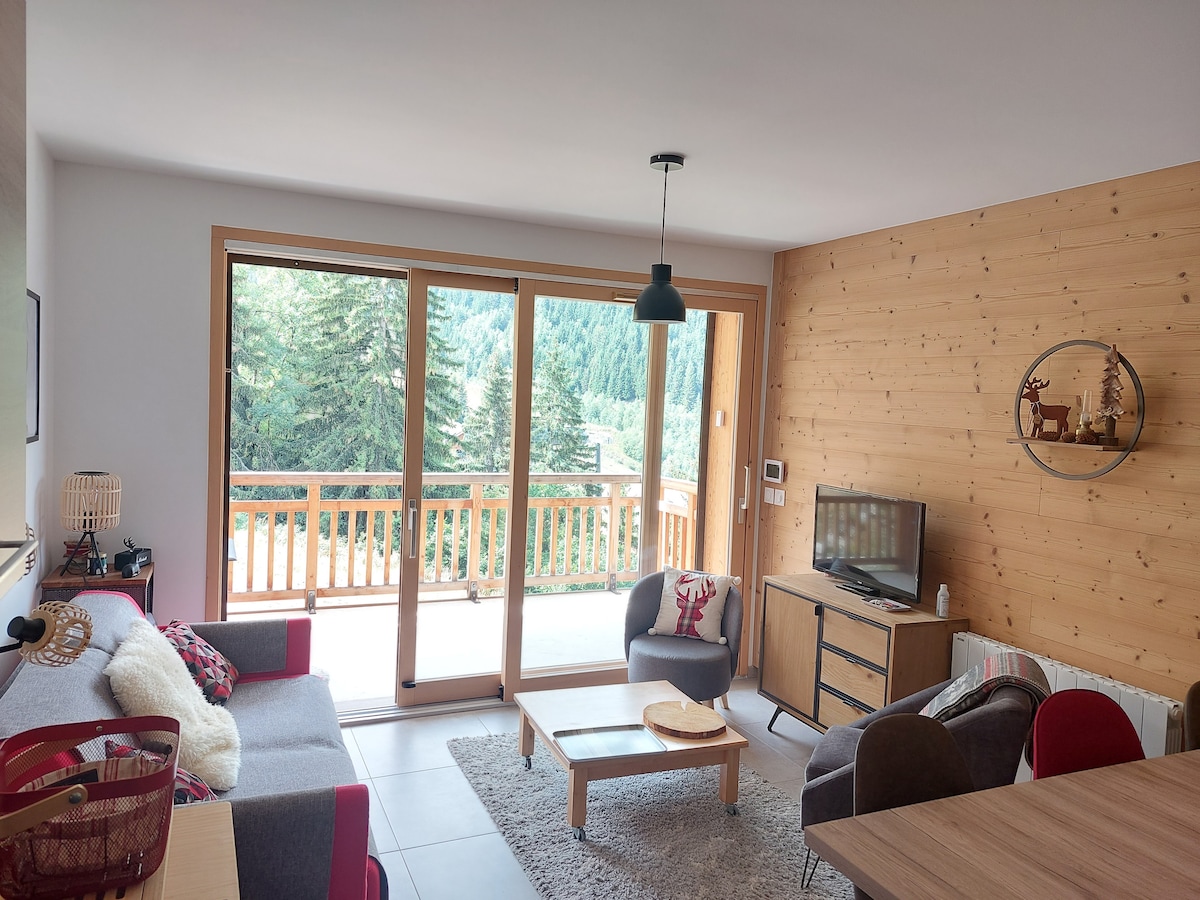 Un pequeño estudio para 4 personas, en el corazón de esta estación de esquí familiar cerca de todos los servicios, incluidos 3 remontes, abiertos en invierno y verano, acceso a los 249 km del Grand Domaine. El salón principal: sofá cama que se convierte en una cama doble, TV y wifi, mesa y cuatro sillas y una pequeña cocina. Además, cuenta con literas, un baño, un aseo separado, un gran balcón orientado al oeste con unas vistas magníficas. Somos propietarios de otros 2 estudios, uno enfrente y el otro en el mismo pasillo. Se pueden reservar juntos.