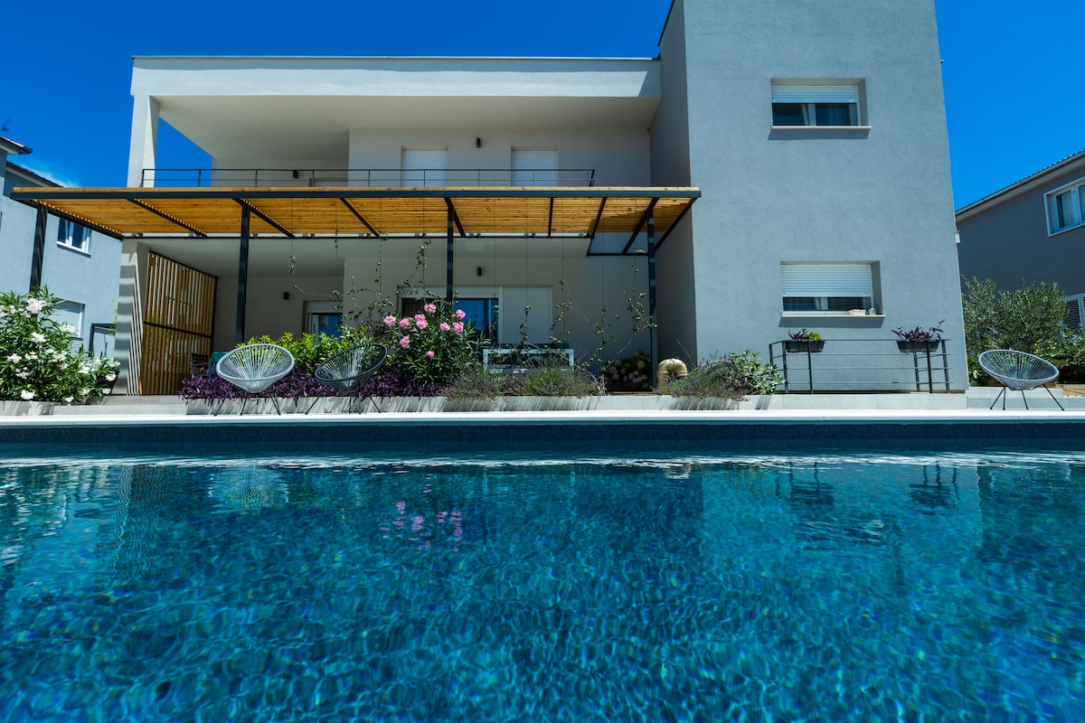 ¡Bienvenido a la villa Veleư! ¡Una propiedad única te ofrece todo lo que puedas necesitar para pasar unas vacaciones inolvidables en Croacia! La propiedad se encuentra en los suburbios de la ciudad de Zadar, donde podrás disfrutar de un momento de paz con tu familia o amigos lejos de un ruido y alboroto de la ciudad, nadar, tomar el sol y beber bebidas frías cerca de la piscina, preparar comidas en la cocina de verano y reunirte en una enorme mesa de roble, y ver magníficas montañas de Velebit.