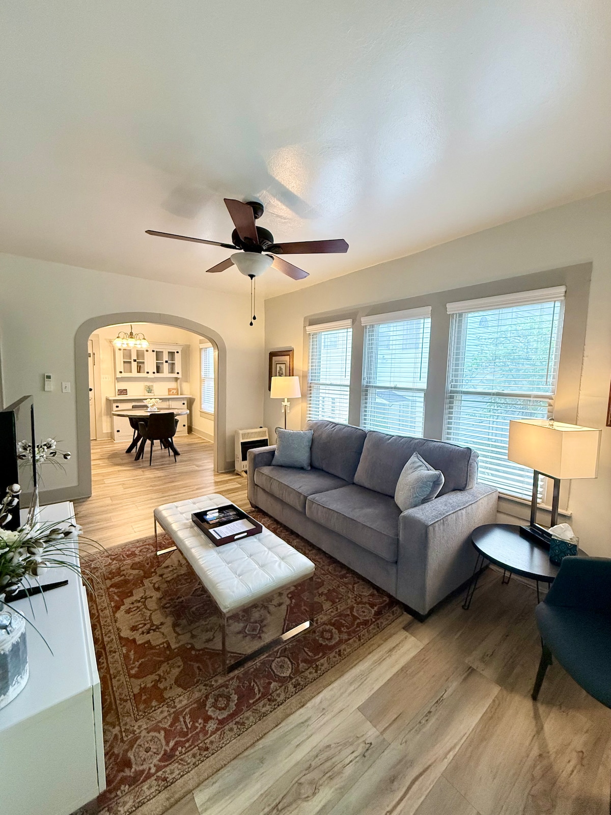 Experimenta la elegancia de nuestro histórico loft del centro. Con interiores bellamente restaurados y decorados, este espacio relajante cuenta con techos de 12 pies y un ambiente sereno. Disfruta de la comodidad de estar cerca de todo, lo que hace que tu viaje sea muy fácil de planificar. Da tranquilos paseos matutinos por las calles históricas mientras la ciudad duerme y luego regresa al loft para tomar una refrescante taza de café. Sal a descubrir una vibrante variedad de tiendas de antigüedades, boutiques, bares y restaurantes.