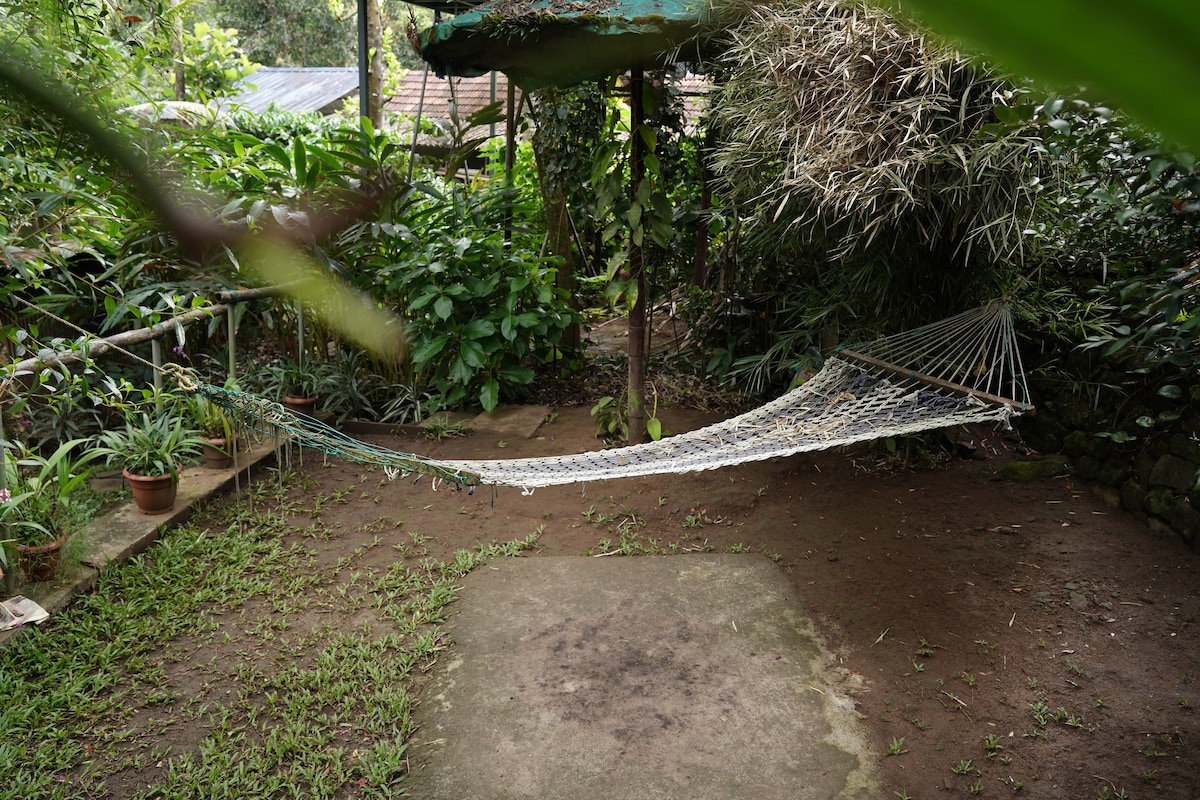 Escápate a un acogedor refugio enclavado en plena naturaleza. Esta encantadora casa de campo ofrece una escapada perfecta para cuatro personas, combinando encanto rústico con comodidad moderna. Disfruta de dos amplios y cómodos dormitorios con aire acondicionado, baño privado y una pequeña terraza, donde puedes tomar tu café por la mañana mientras te sumerges en las majestuosas vistas al bosque, el canto de los pájaros y el agua ondulante. Estamos situados a solo diez minutos de Thattekkad, el famoso santuario de aves que alberga más de 300 especies de aves.