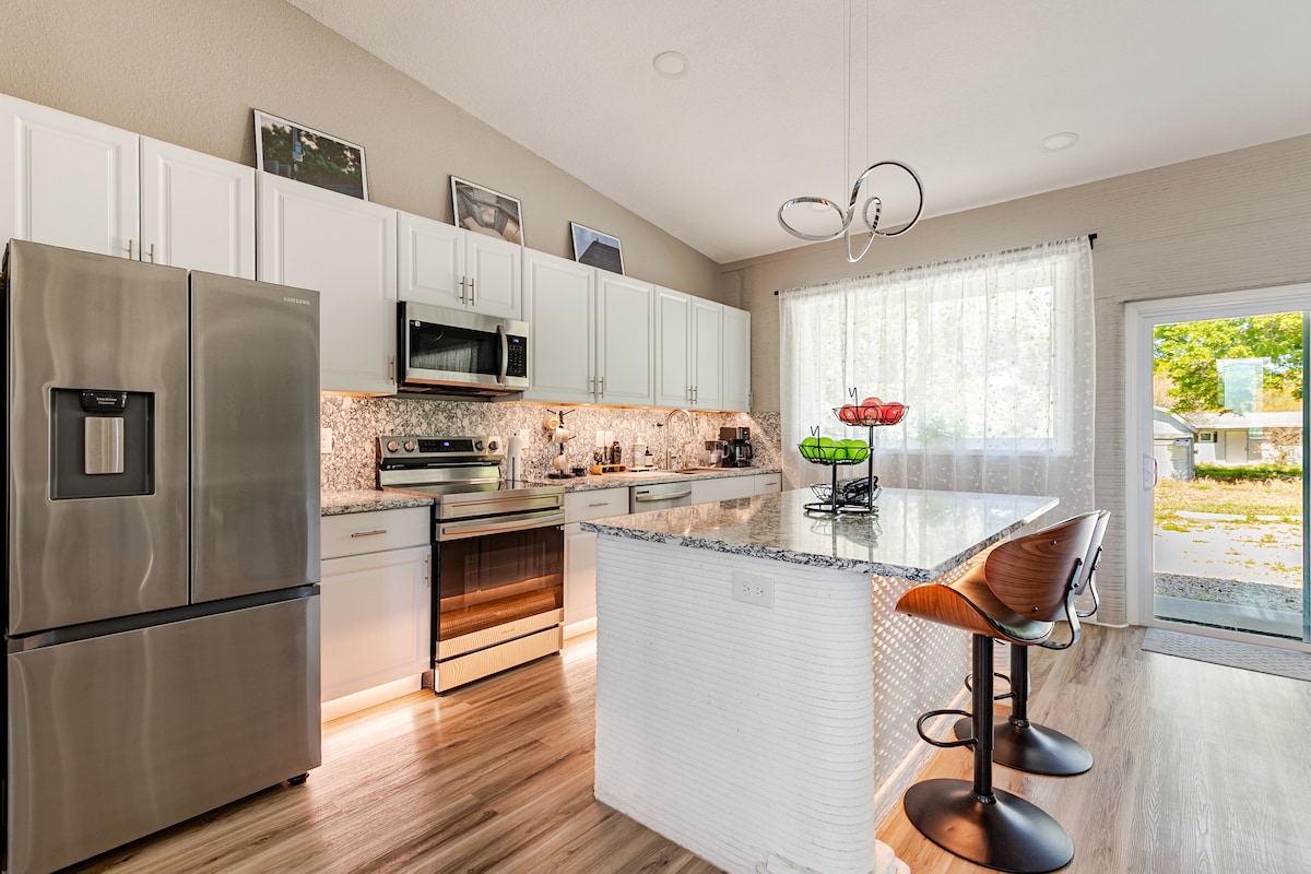 La serenidad llama en este apartamento llave en mano de 300 pies cuadrados totalmente amueblado y decorado en relajantes azules y verdes. Una cama tamaño queen con un cómodo colchón de espuma viscoelástica, cocina completa con horno, vestidor y ducha espaciosa. Zona de estar con sillas giratorias y una mesa de centro que se puede elevar y convertir en una zona para comer. Televisión por streaming y wifi ultrarrápido para tu comodidad. Entrada privada e incluso una lavandería compartida justo fuera de tu puerta. ¡A pocos pasos del río!