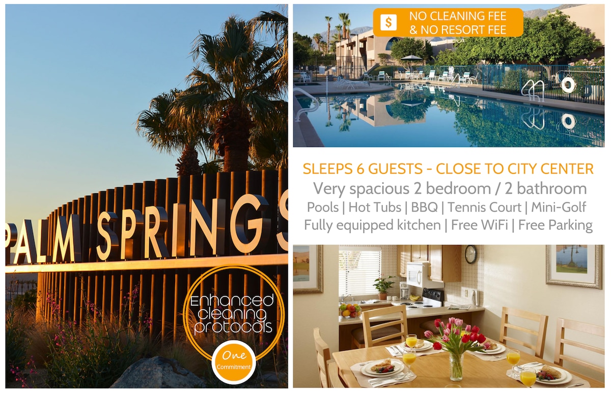 Pls mssg me para $ 200 dis.count antes de reservar. Traslado privado de pago a los festivales. A 10 km de Polo Fields. El lugar perfecto para Coachella/Stagecoach. Cocina totalmente equipada (nevera, estufa, microondas, cafetera, horno, utensilios), lavadora+secadora, balcón/patio, mesa de comedor, sala de estar,TV ,toallas y sábanas. Cama tamaño king en el dormitorio principal, 2 camas individuales en la segunda cama BR y Murphy queen en la sala de estar, sofá de tamaño completo y sofá de dos plazas en el liv rm. Más de 1000 pies cuadrados. Lazy river swimmng pool, 24Hr checkin, Free parking, Wifi,