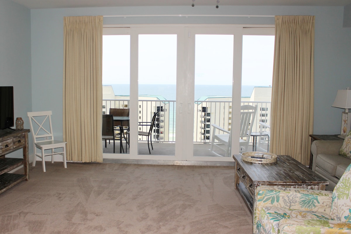 ¡Ven a disfrutar de un balcón privado con increíbles vistas al golfo! A pocos pasos de la playa, tiendas, restaurantes y entretenimiento. Las comodidades del resort de Laketown Wharf incluyen cinco piscinas (una climatizada) , un cabrito, 2 bañeras de hidromasaje, 4 restaurantes, la tienda de helados, el gimnasio con las visiónes del golfo, el putting green, el garaje de estacionamiento, la fuente nocturna y el espectáculo de luz. ¡CUBRIMOS LA TARIFA DEL CENTRO VACACIONAL! ¡Despierta con los sonidos del océano! ¡Te proporcionamos equipo de playa y vagón! Lavadora y secadora de tamaño completo. ¡Ven a relajarte antes de las multitudes!