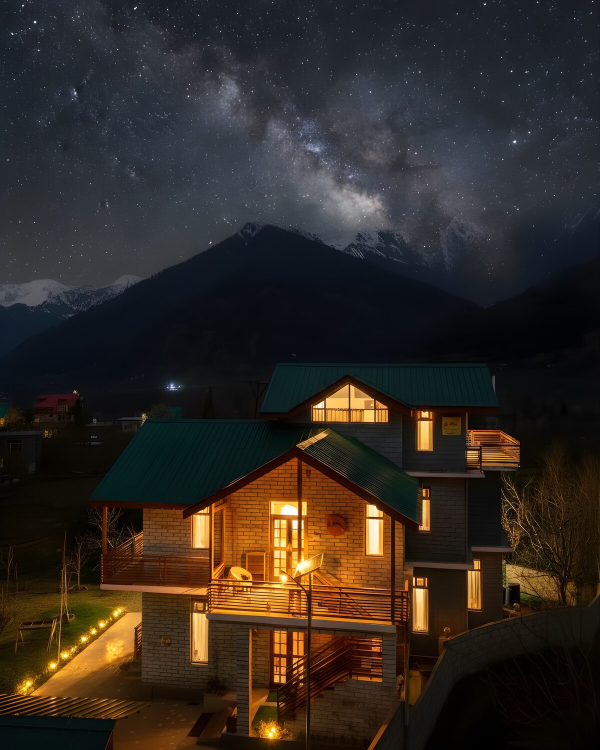 Escápate a una casa de montaña junto a un arroyo cerca de Naggar, rodeada de bosques de cedros y huertos de manzanos. Escucha el agua del glaciar que fluye, disfruta de un acogedor dormitorio, un amplio salón, una cocina equipada y asientos privados al aire libre para tomar café al amanecer o ver el fuego al atardecer. Un refugio tranquilo con wifi de respaldo, comodidades inteligentes y rutas de senderismo justo a la puerta, perfecto para parejas, amigos o viajeros solos que buscan naturaleza y tranquilidad. El servicio de limpieza mantiene el lugar ordenado para que puedas relajarte y disfrutar.