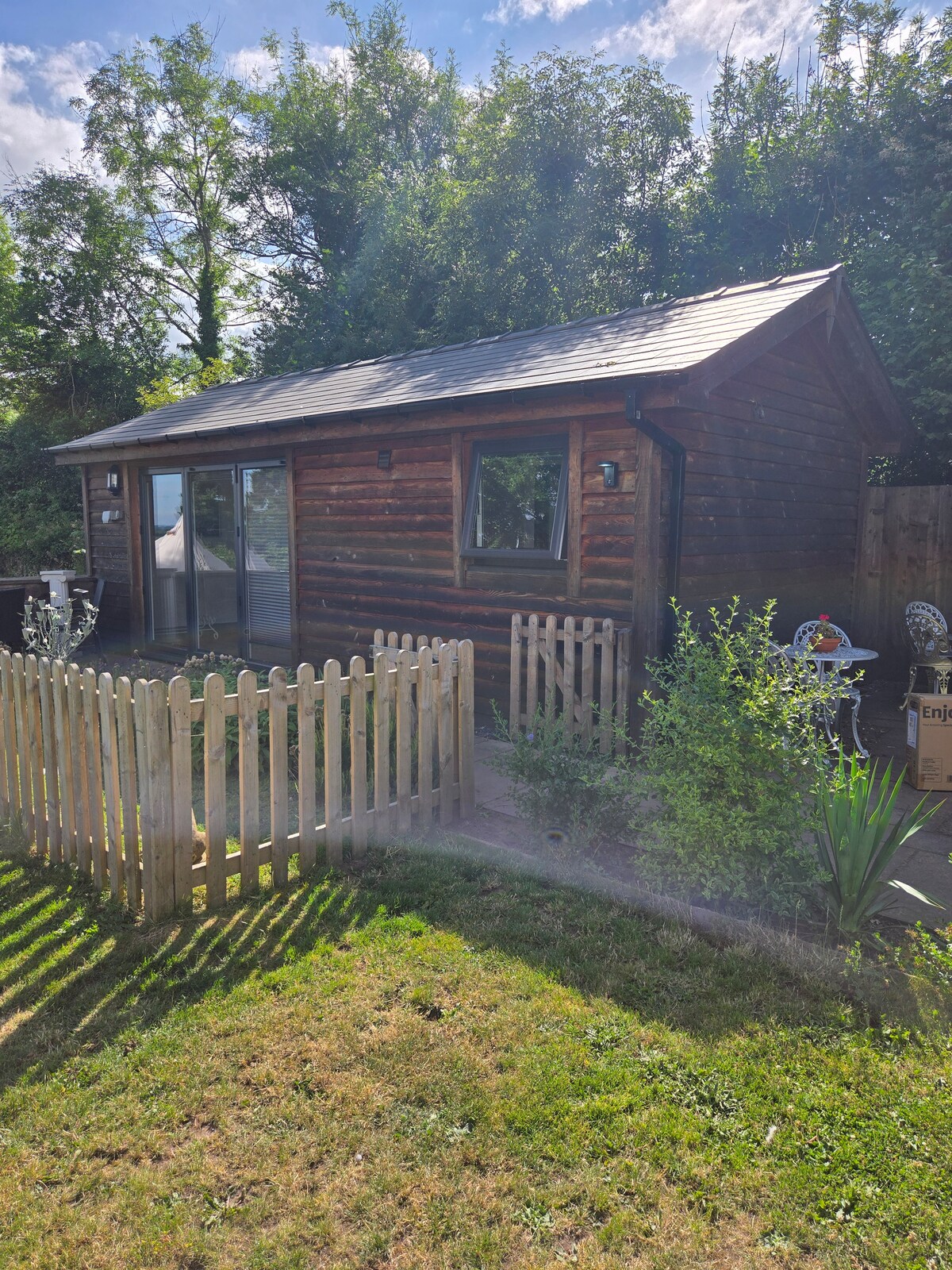 Daisy Lodge se encuentra en el jardín de nuestra hermosa casa de campo, consulta la foto de la ubicación para ver la proximidad a nuestra casa. Estamos a 3,2 millas de la maravillosa ciudad comercial de Abergavenny, puerta de entrada al Parque Nacional de Beacons. Tenemos unas vistas increíbles de la montaña Skirrid y del campo. Puedes deambular libremente por nuestros 5 acres de terreno/jardín. Suministramos muebles de exterior y el uso exclusivo de nuestra bañera de hidromasaje externa. Ten en cuenta que está disponible para su uso durante todo el año, se debe firmar un descargo de responsabilidad antes de su uso.