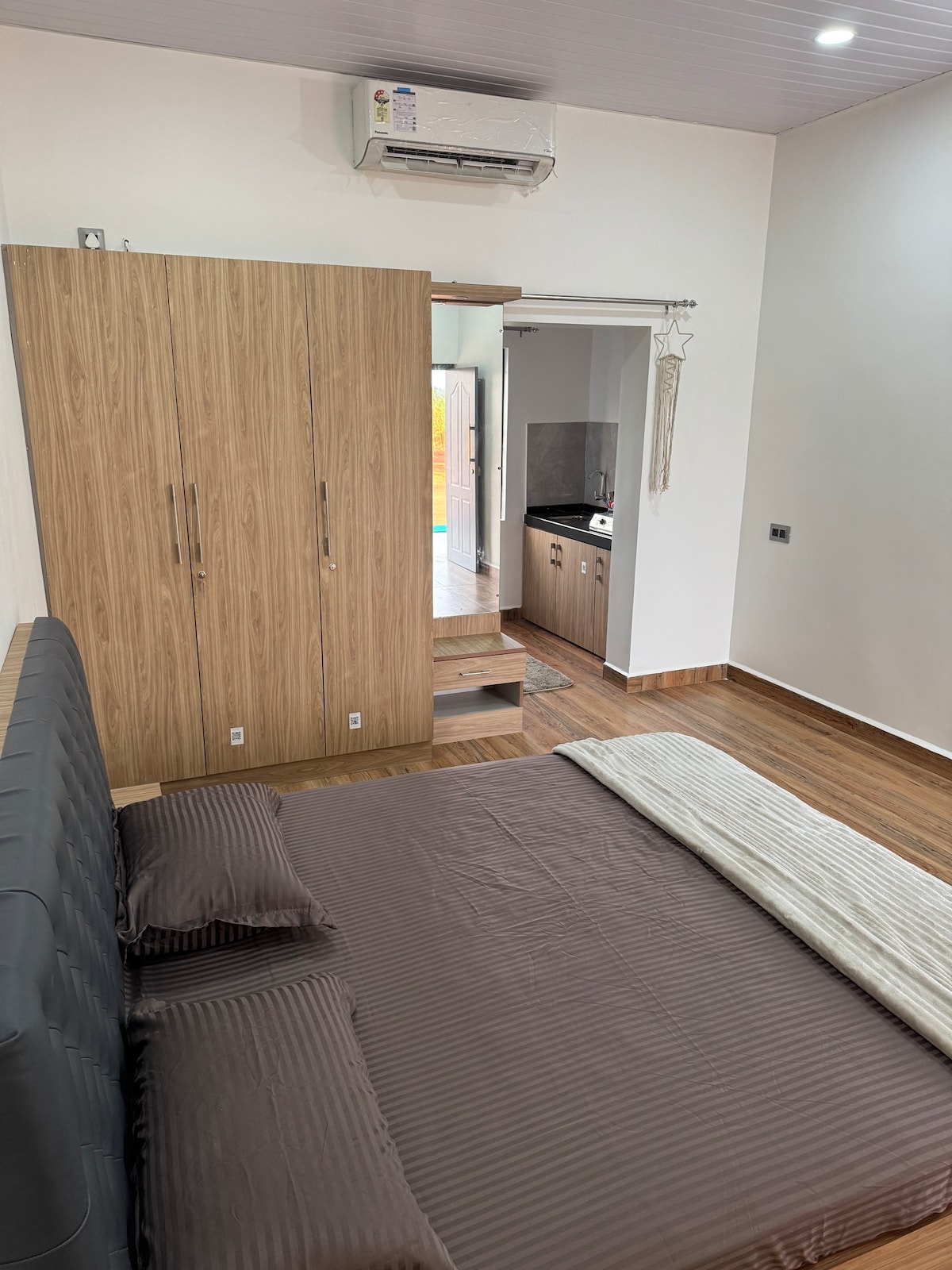 Mannat Homes es parte de las estancias en la granja Mannat donde puedes escapar del bullicio de la ciudad y relajarte en nuestra hermosa granja en Gokarna, perfectamente ubicada con playas pintorescas a solo unos kilómetros de distancia. Disfruta de noches acogedoras con fogata y barbacoa, rodeado de amigos y naturaleza. Este refugio poco convencional que admite mascotas es el lugar perfecto para relajarse, explorar y crear recuerdos inolvidables.