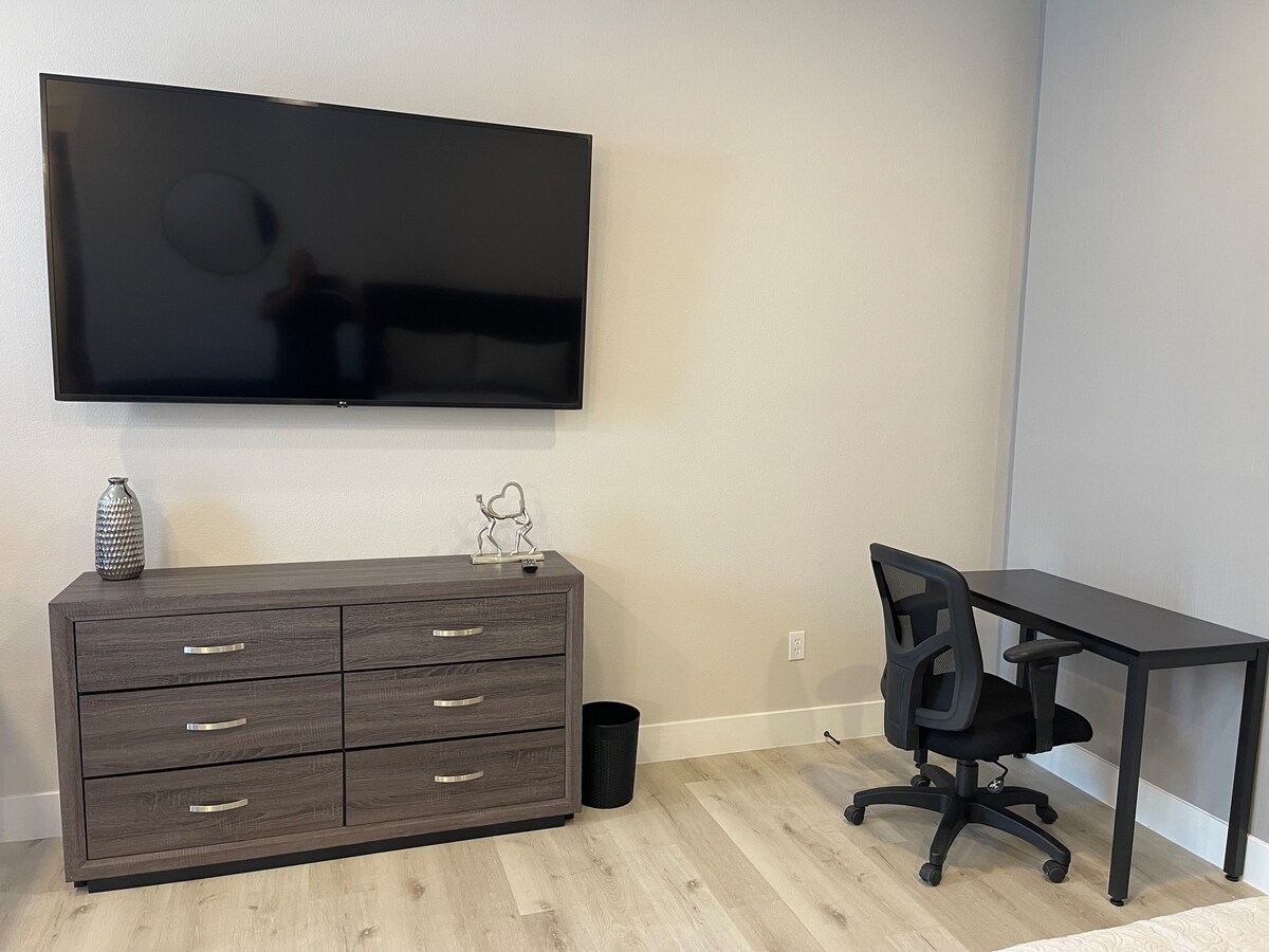 Nuevo estudio de renovación (575 pies cuadrados) de una casa personalizada en un terreno de 1,0 acre. Aparcamiento gratuito, aparcamiento para caravanas. ¡Excelente ubicación! A 3 millas del aeropuerto/Strip/UNLV. Aire acondicionado independiente. Una planta con entrada privada y patio delantero privado. 1 cama tamaño king, lavadora/secadora pequeña, cocina de granito, muebles nuevos con colchón nuevo. Unidad de aire acondicionado dividida. Limpia y cómoda.