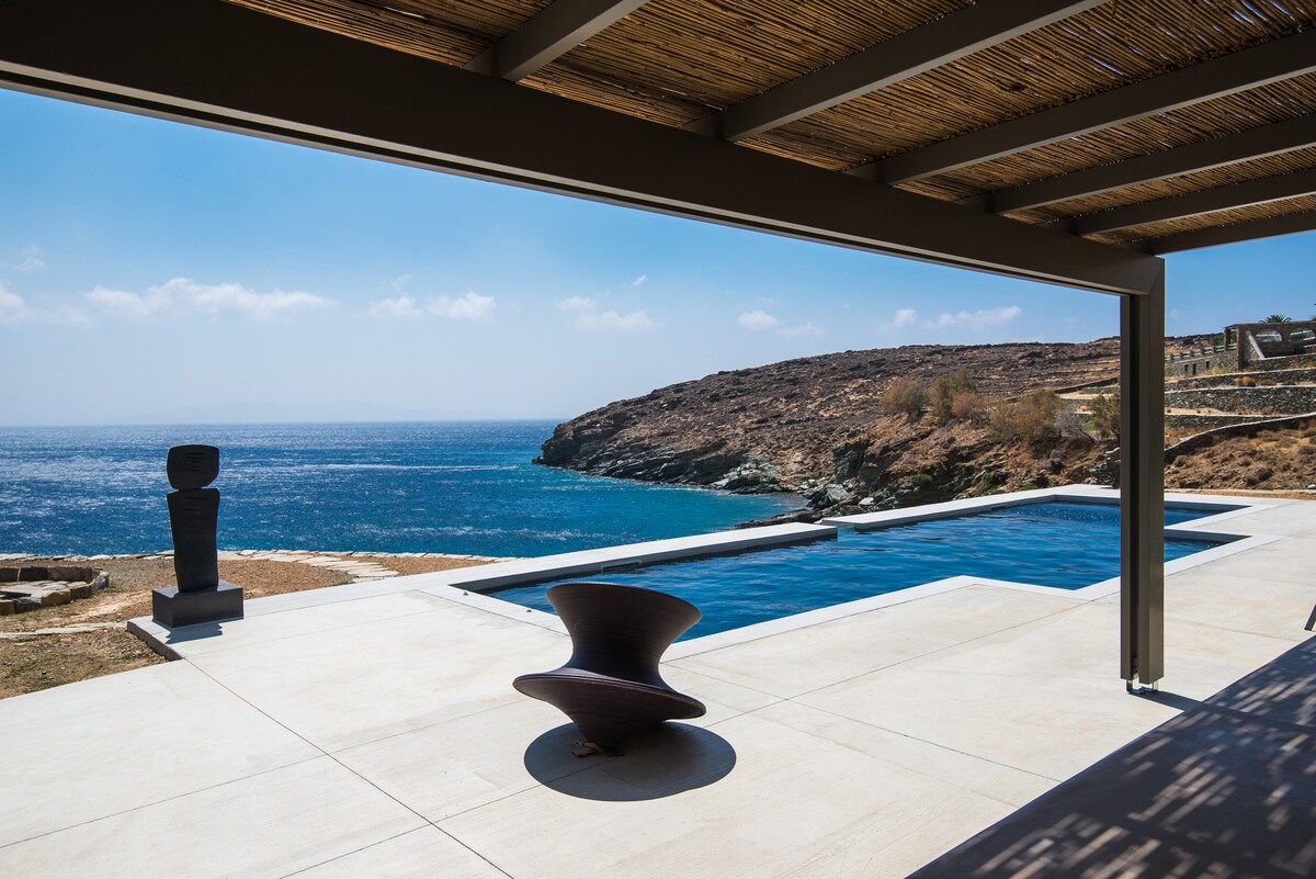 Increíble casa en la playa de Apigania, con una puesta de sol única y aguas cristalinas. Puedes sentir la naturaleza, sentir la brisa de las Cícladas como en un velero y oler el tomillo y la salvia. Decoración minimalista con toques de auténticos objetos tradicionales. Amplia terraza frente al mar, acceso privado al mar, aparcamiento privado. Ofrecer una cesta de bienvenida con productos locales. Servicios personalizados bajo petición.