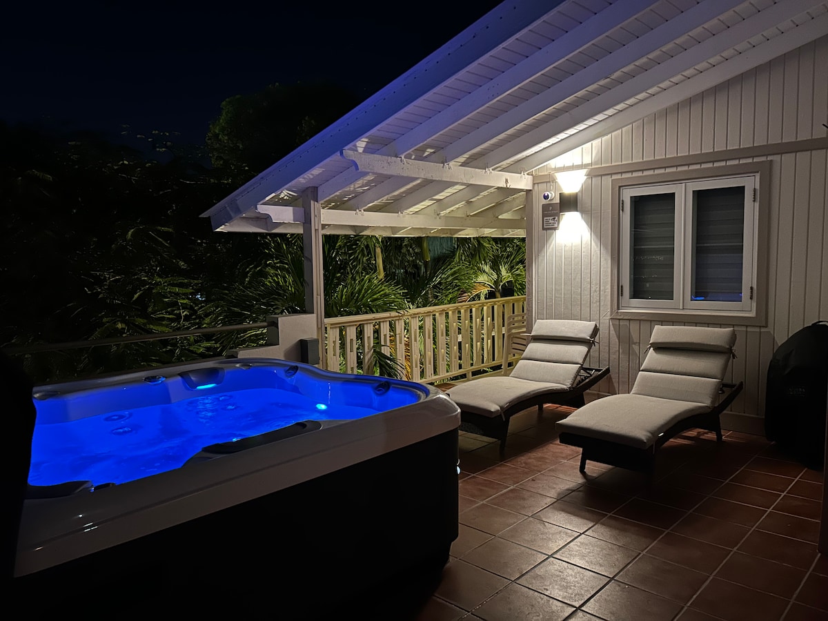 Habitación 1 con bañera de hidromasaje y mesa de billar en Parguera Retreat