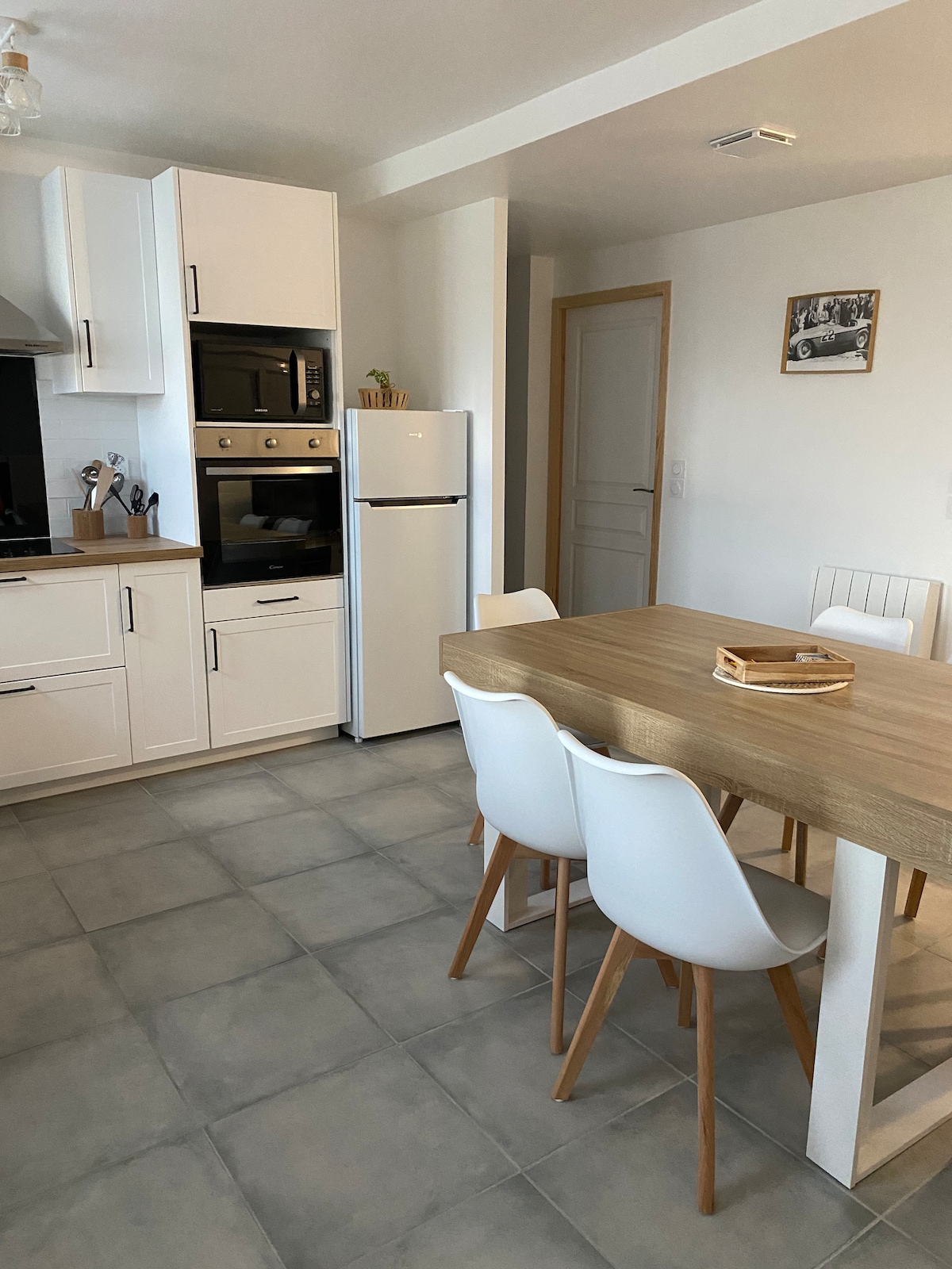 El alojamiento se encuentra en la planta baja de nuestra casa, vivimos arriba y su entrada es independiente. A 15 minutos del circuito de las 24 HORAS en coche. Pequeños comercios a menos de 100 metros. Terreno cercado, ¡ideal para sus mascotas! Tendrá que codearse con nuestros perros que están en libertad. Los vehículos se pueden estacionar en la propiedad y en la parte posterior de la casa. Se proporcionan sábanas y toallas. Posibilidad de préstamo de barbacoa de gas.