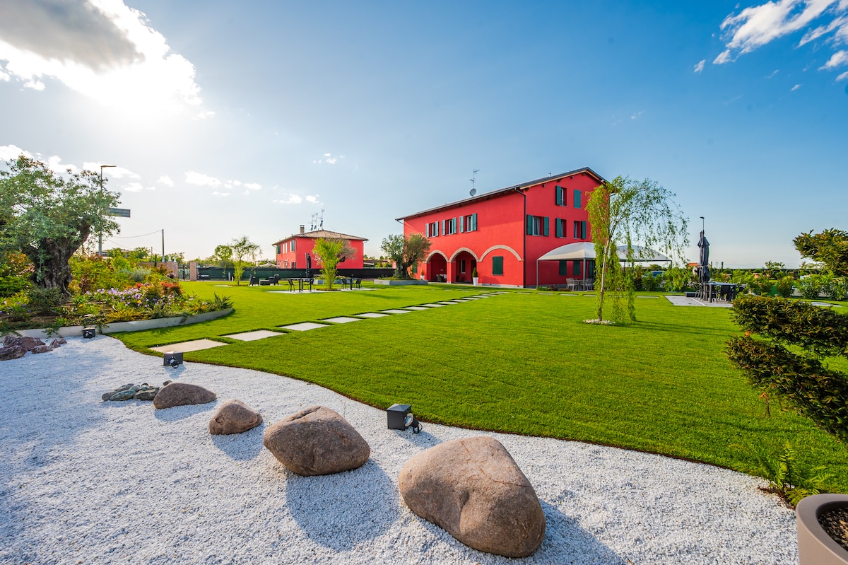 A solo un minuto de la carretera de circunvalación, conveniente para ferias, el aeropuerto y las conferencias, y a pocos minutos del centro histórico, esta maravillosa suite garantiza diversión y relajación solo o en compañía. Rodeado de campiña verde, con todos los servicios que ofrece piscina exterior fresca con hidromasaje caliente, mesa, asientos, tumbonas, barbacoa y mesa de ping-pong. Posibilidad de convenciones, eventos, formación de equipos en la piscina.