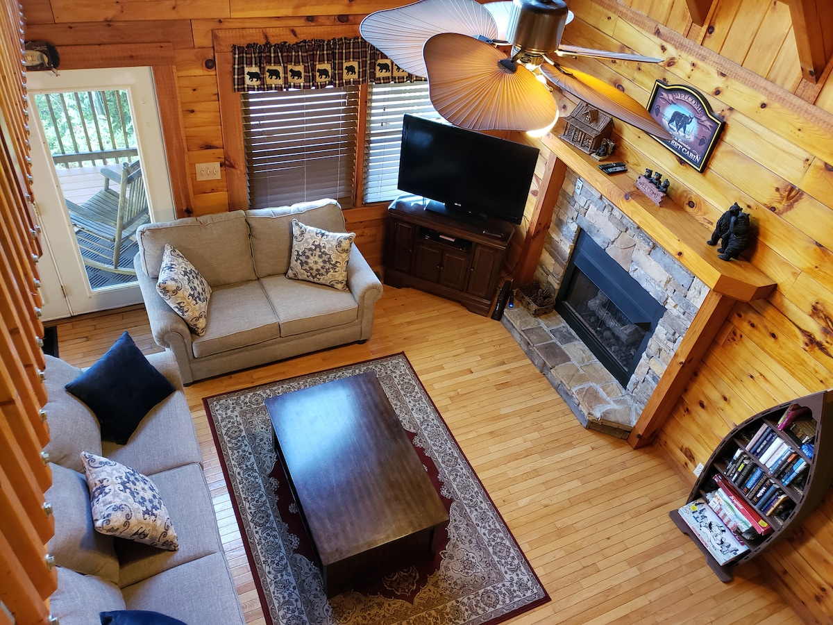 La cabaña Bear Mountain Overlook está encaramada sobre una increíble vista de más de 180 grados de varios picos hermosos y valles distantes. Una experiencia de montaña privada con camas, utensilios de cocina y electrodomésticos nuevos, muebles Amish y decoración de Smoky Mountain. Disfruta de nuestra mesa de billar, jacuzzi nuevo al aire libre, juegos y chimenea interior (de temporada). Disfruta de nuestra cocina completa con todos los utensilios, artículos de cocina y para servir que necesitarás para tu familia. Dos baños completos, lavadora/secadora y mucho aparcamiento conveniente. ¡Hermosas vistas!