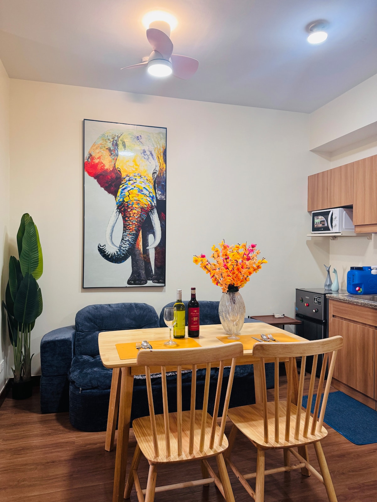 Fully furnished unit with divider for bedroom. Walking distance to groceries, convenience stores, restaurants, malls, banks, bars. Active night life! ❤ Pool, Sauna & Gym Access (w/ fee) ❤ 55" 4k UHD TV + A/C + Workspace ❤ Streaming apps available using your own account ❤ Coffee, fresh towels, and essentials provided ❤ Filtered & Alkaline Drinking Water ❤ Child & Dog-friendly ヅ Accessible paid parking off premises ヅ Reliable WiFi perfect for remote work