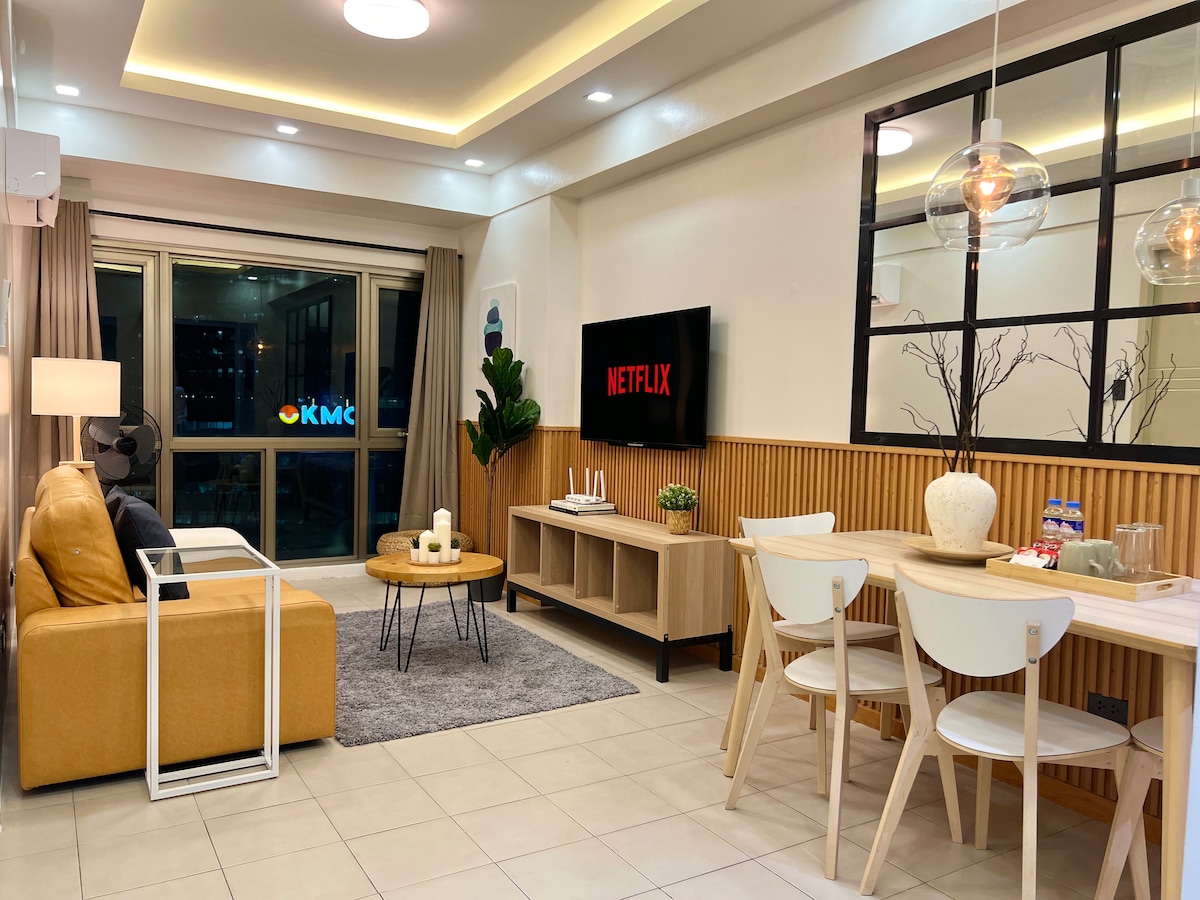 Reserva esta lujosa estancia en el centro de BGC. Todo está a solo unos pasos. Oficinas de primera calidad y centros comerciales de alta gama rodean Uptown Parksuites. Disfruta de una escapada cosmopolita en el centro comercial Uptown. Descubre conceptos únicos de comida y compras. Diviértete toda la noche en bares de primer nivel a la vuelta de la esquina. Relájate en nuestra unidad de dormitorio de mediados de siglo. Relájate en una cama tamaño queen y un sofá cama adicional. Las comodidades incluyen un televisor inteligente de 55 pulgadas, internet de 400 MBPS, zona de estudio y balcón privado.