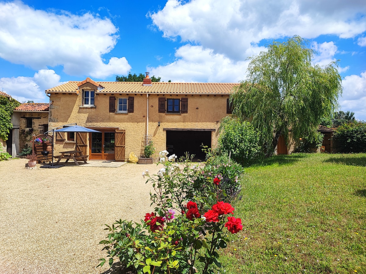 Esta casa de campo se encuentra a las puertas de Anjou. Viticultores y pueblo a cinco minutos. Podrá disfrutar del Puy-du-Fou a 55 minutos, el Futuroscope está a 1h20, los primeros castillos del Loira están a 30 minutos, el parque biológico de Doué en Anjou a 20 minutos, karting a siete minutos, parque del valle a 10 minutos, piragüismo, ciclismo, rutas de senderismo... Podrá recoger los huevos en el gallinero y alimentar a las gallinas. ¡Nuestros caballos están cerca de la casa. Se admiten animales si están bien educados!
