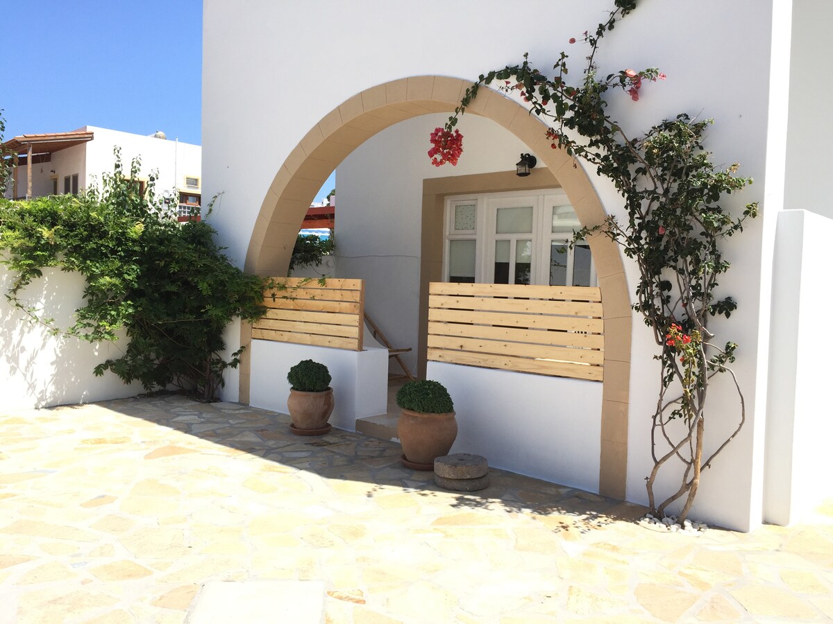 El Pyrgali es una casa tradicional de nueva construcción en el corazón de Skala. Consta de 3 niveles y tiene capacidad para 4 personas. La primera planta y el sótano conforman los 2 dormitorios del Pyrgali. La planta baja ofrece un encantador salón-comedor y baño. Saliendo, la gran sorpresa. Un maravilloso patio interior, con hermosas plantas, mesa de comedor y una cocina al aire libre que no le falta nada. Sin duda, el visitante estará encantado con la singularidad y el estilo del Pyrgali.