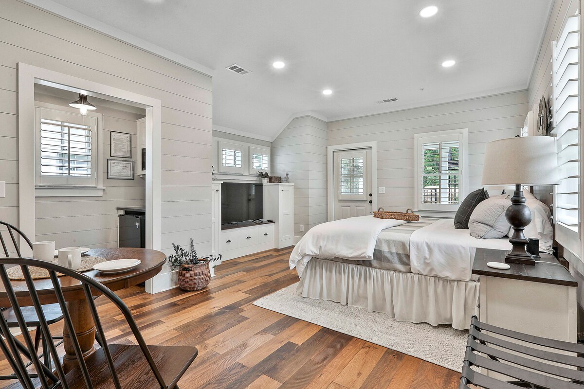 Ubicado en el centro histórico de Senoia, este apartamento de reciente construcción se encuentra a solo 300 metros de la calle principal de Senoia con restaurantes, tiendas boutique y el mundialmente famoso set de «Alexandria» de The Walking Dead. Lujoso apartamento sobre el garaje con cocina completa, gran habitación con sofá cama tamaño queen, dormitorio privado con vestidor y lavadora secadora apiladas. Wifi de alta velocidad, TV inteligente, electrodomésticos de alta gama y controles de climatización independientes. Incluso los zombis necesitan sus comodidades.