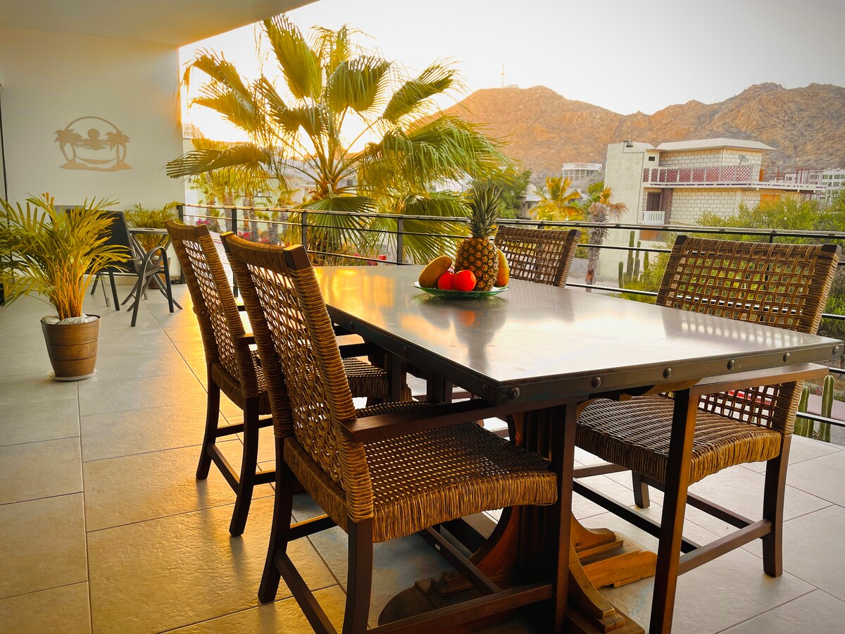 Imagínate tomar el café de la mañana en tu rooftop privado y pasar la tarde en la alberca infinita antes de ir a Playa Médano. Este penthouse en el último piso está a 5 minutos del centro de Cabo, pero se siente apartado del ruido. Ideal para familias o parejas al atardecer. Todo está listo: equipo de playa, cocina equipada y seguridad 24/7. Tú solo llegas. Lo difícil será irte.