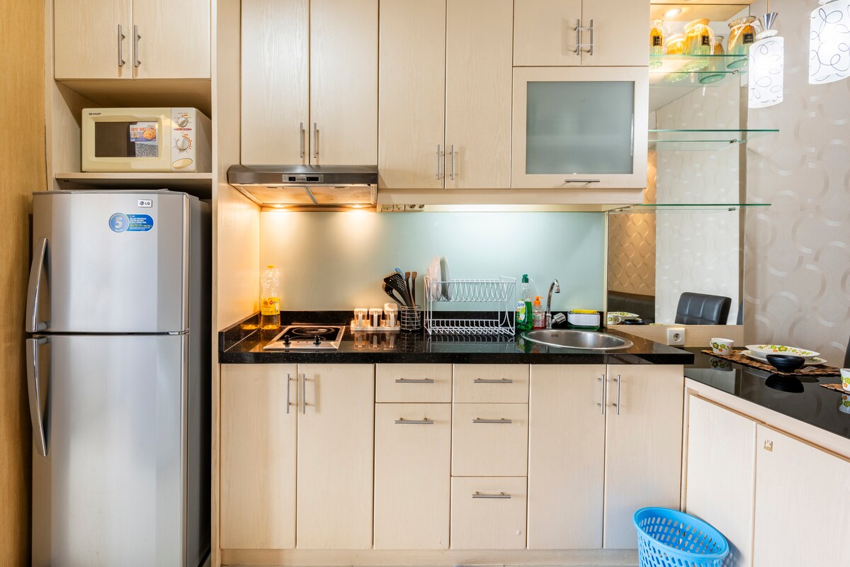 Sábanas limpias para cada nuevo huésped, apartamento de 2 dormitorios, todo en uno, todo lo que necesitas está aquí: TV por cable, wifi, cocina, agua, café, té, servicios, información, estación de cercanías, taxi, Grab, Gocar, centro comercial/supermercado/Indomaret, restaurante/cafetería, banco/cajero automático, lavandería, gimnasio, piscina, correr, tenis, baloncesto, clínicas/medicina, etc.