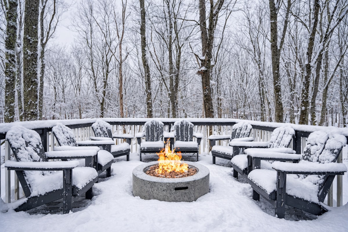 Un alojamiento verdaderamente único en las montañas Pocono, hogar de un terreno montañoso ondulado, cascadas impresionantes y hermosas, bosques prósperos, más de 170 millas de río sinuoso. Creado con la experiencia temática "la mejor noche en casa", los huéspedes pueden disfrutar de una copa de vino bajo las estrellas en un jacuzzi privado, además de disfrutar de películas en su propia pantalla de cine de 135 pulgadas equipada con el primer proyector LED 4K para juegos del mundo. Disfruta de los dormitorios temáticos y disfruta de una estancia en la que el bosque te lleve mientras te quedas con la máxima comodidad y lujo.