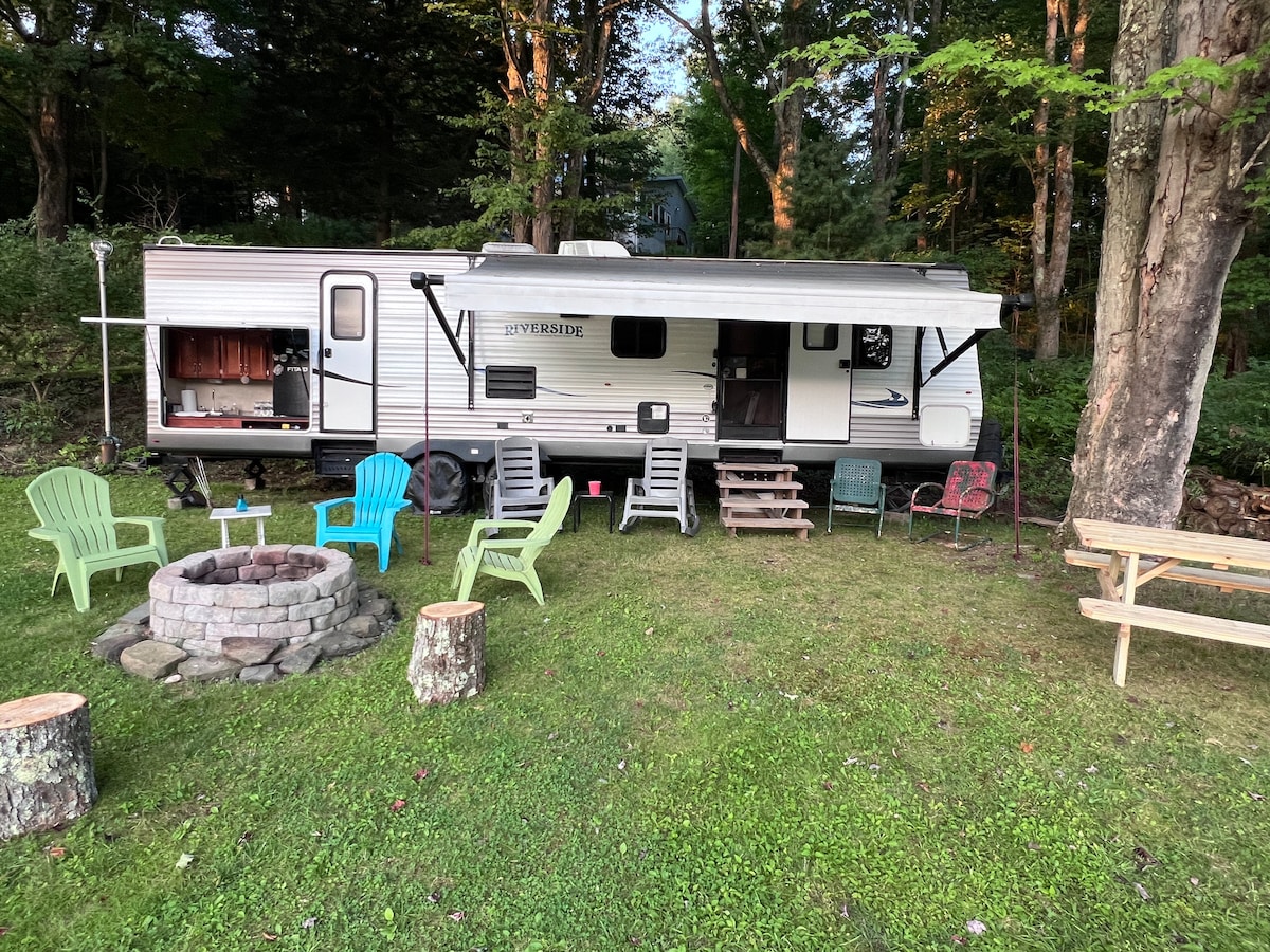 ** ¡Sitio web nuevo y mejorado para 2025! ¡Te damos la bienvenida a la caravana Crooked Arrow! Pasa unas noches en esta preciosa autocaravana ubicada en el condado de Lancaster. Esta autocaravana totalmente equipada se encuentra en el bosque y ofrece un lugar para relajarse y desconectar de la vida cotidiana. Empieza el día con una taza de café recién hecho mientras escuchas el canto de los pájaros o prepara un desayuno delicioso cocinándolo sobre el fuego. Disfruta de una noche relajante alrededor de la hoguera escuchando todos los sonidos que la naturaleza tiene para ofrecer.