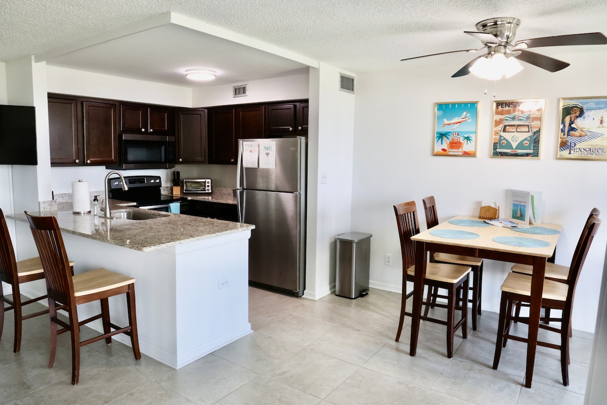 Hermoso apartamento de 1 dormitorio y 1,5 baños con capacidad para 6 personas. ¡Trae tus trajes de baño y prepárate para relajarte! El apartamento está en la planta 12, la torre más cercana al muelle. - 1 dormitorio con cama tamaño king, acogedora zona de literas para niños y colchón de espuma de gel en el sofá plegable. (TODOS LOS COLCHONES NUEVOS EN SEPTIEMBRE DE 2025). - ¡Todas las sábanas y toallas incluidas, incluidas las de playa! - 2 sillas de playa, 2 tablas de boogie y sombrilla de playa incluidas. - Lavadora y secadora - Cocina totalmente equipada para disfrutar de la cena con vistas. - Wifi y cable