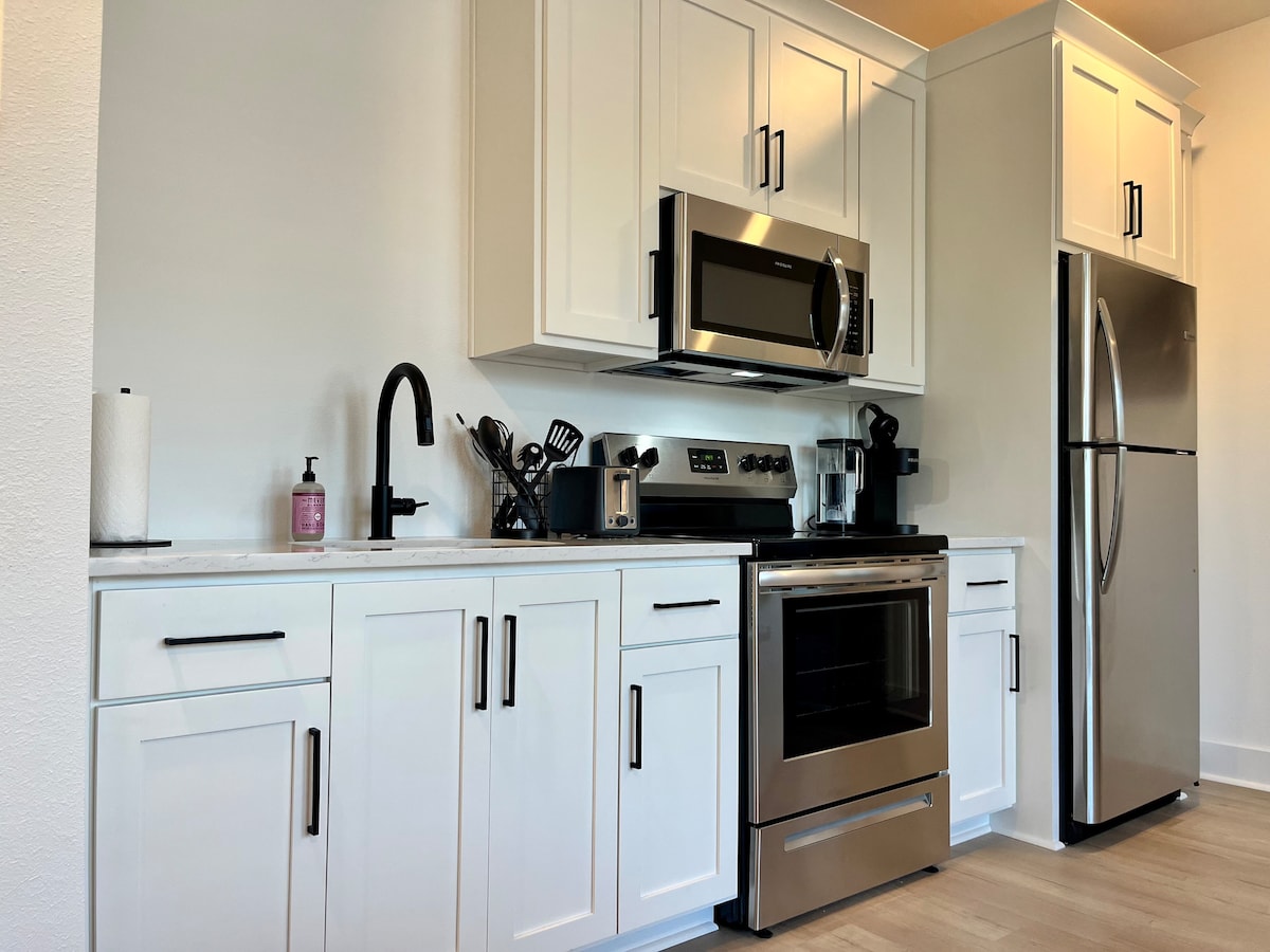 Hermoso apartamento tipo estudio de nueva construcción, a solo minutos del centro de la ciudad. Ubicado en la deseable East Hill de Pensacola. Disfruta de restaurantes y cervecerías artesanales a poca distancia en bicicleta. Pasa un día relajante en nuestras increíbles playas de arena blanca a solo 15 minutos en coche. El estudio cuenta con suelos de lujo en todas partes y encimeras de cuarzo en su cocina de tamaño completo. Los huéspedes tendrán su propia entrada privada vallada separada de los propietarios.