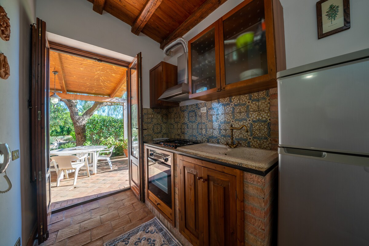 A 30 km de Sciacca y del Valle de los Templos de Agrigento, en el golfo de Eraclea Minoa, en una posición montañosa pero a poca distancia de la hermosa playa de Bovo Marina, se encuentra una hermosa casa-patio desde la que se puede disfrutar de unas vistas impresionantes. Desde la ventana de la sala de estar, la vista se extiende desde la playa de Torre Salsa (reserva natural) hasta Capo Bianco. La playa de Bovo Marina no suele estar muy concurrida, ni siquiera en pleno verano.