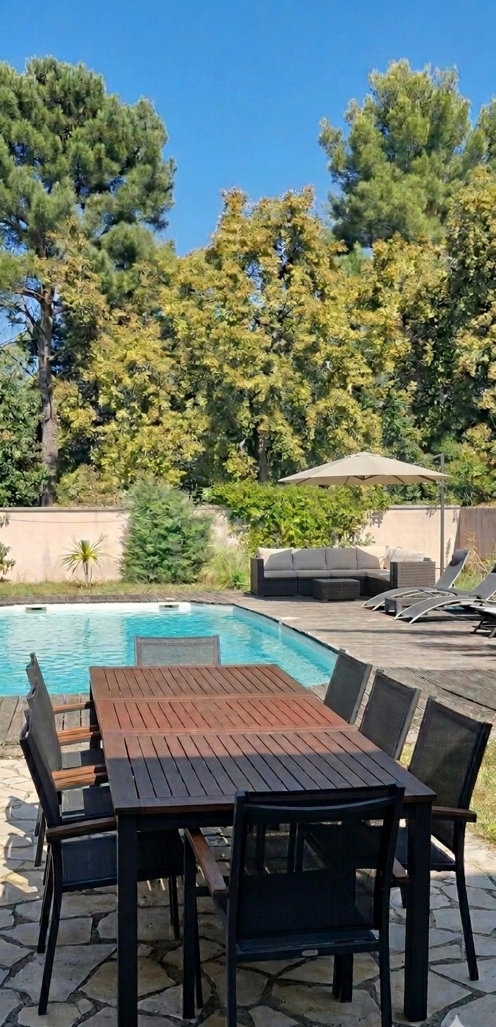 (La température de l'eau piscine est ok à partir de Juin) Hôte confirmé, je vous propose cette spacieuse maison en pierre, alliant charme et confort pour une expérience authentique, insolite. Bien située à 10 min de la gare de Bordeaux en tram, bien accessible. Entièrement équipée pour votre confort : literie de qualité, cuisine complète, salle de jeux, grande piscine, wifi, terrasse, salon de jardin, déco atypique, véranda ombragée entourée de végétation dense. Entreprise sérieuse et flexible.