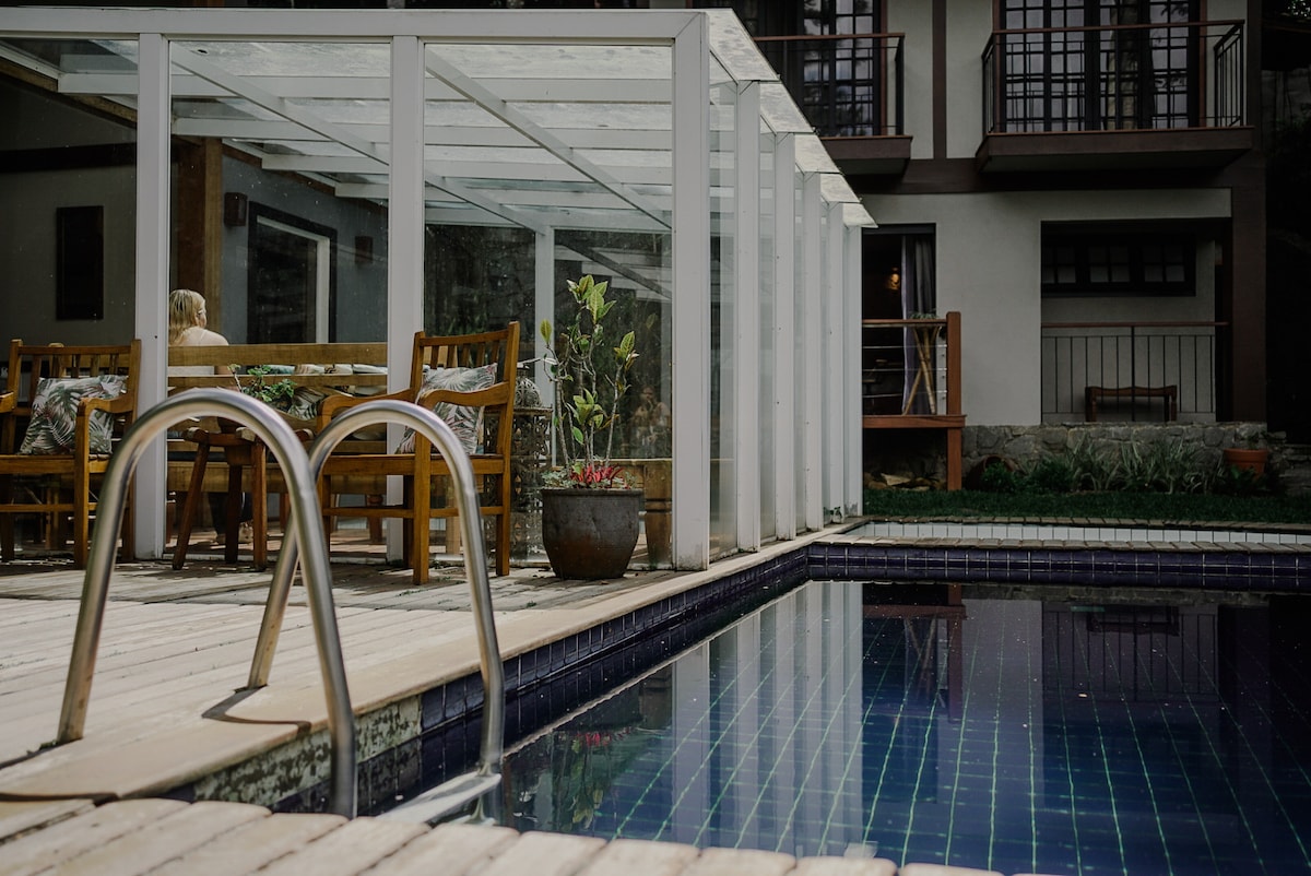 ¡Suite en Itaipava con vista a una hermosa piscina!