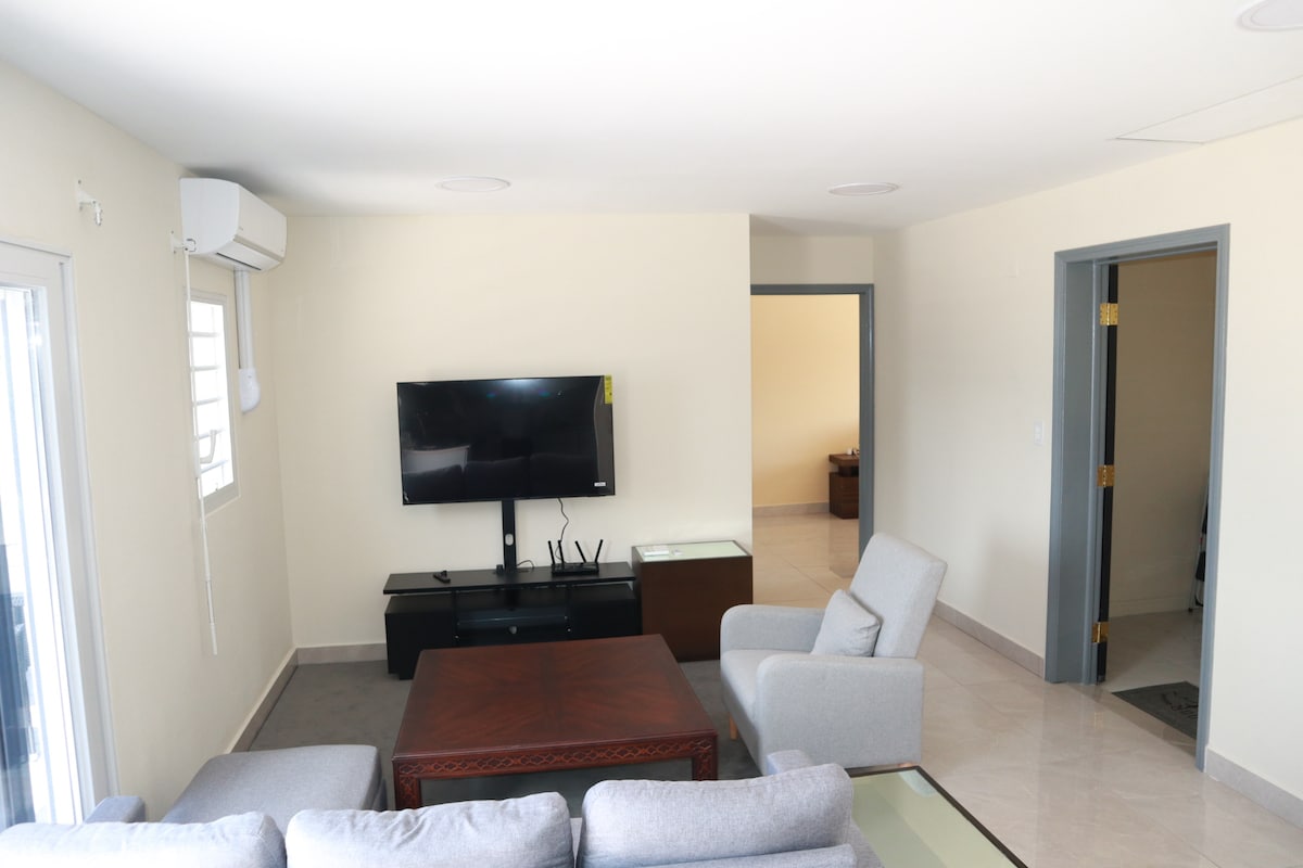 «Villa Senorita» se encuentra en el complejo residencial privado y seguro Mandara Residences. Este nuevo y moderno condominio cuenta con 164 metros cuadrados de espacio interior y exterior con wifi en todas partes. El apartamento consta de dos dormitorios principales con dos baños, salón con zona de cocina, terraza exterior y zona de lavandería. Los dos dormitorios y la sala de estar tienen vistas despejadas e impresionantes al océano, a la playa de Guana Bay, a Saint Barthélémy y a la hermosa naturaleza de la isla.