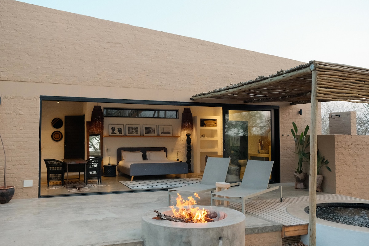 OUT OF KRUGER es una elegante casa de inspiración europea/africana con un estudio independiente en el matorral del sur de Kruger. Capacidad para 4 adultos: las reservas para 2 personas tienen la casa principal (cama tamaño king); las reservas para 3–4 personas incluyen el estudio (cama tamaño queen) con un coste adicional. La valla del Parque Kruger está a un paso de distancia. La casa principal tiene un sistema de respaldo solar, que mantiene las luces, la nevera, el wifi y el aire acondicionado encendidos durante los cortes de luz cortos. Estudio no conectado. ¡Privacidad, comodidad y vida silvestre te esperan!